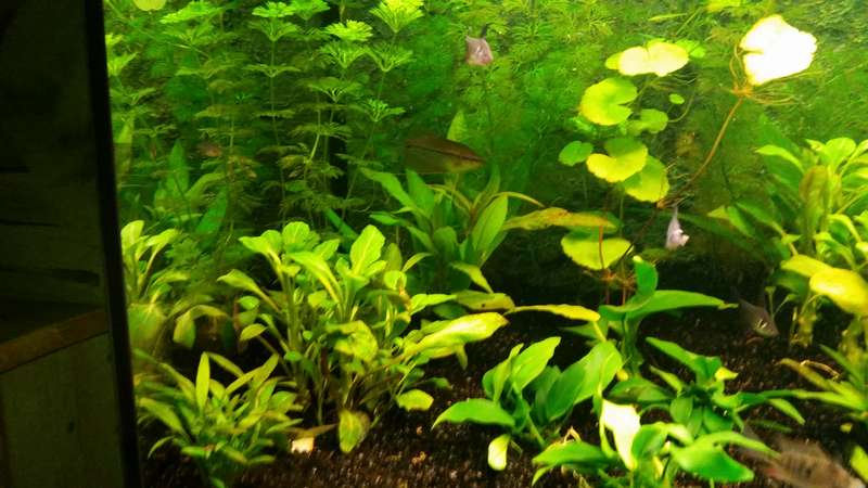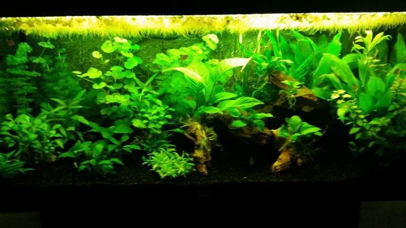 Ik heb een heel groot deel van de drijfplanten weggehaald, ik heb het idee dat mijn planten het nu ook veel beter doen. Sinds het stekken van mijn cabomba groeit de cabomba groeit ie niet meer en wordt de onderkant geel. Iemand een idee hoe dat zou kunnen komen? deze week komen er nieuwe planten een een stuk wortelhout binnen. Ik verwacht dat vandaag of morgen binnen te krijgen en dan gaat het aquarium op de schop. Ik twijfel alleen nog of ik mos of javavaren op het mos ga plaatsen. Ik wil graag een Braziliaanse klimop tussen het wortelhout willen laten groeien. Hoe kan ik dit het beste doen, zodat hij mooi Door het hout heen groeit?