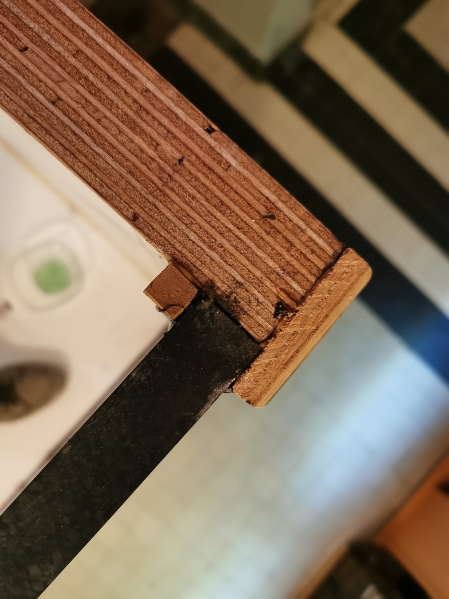 En dit is de staande hechting van het plexiglas met het hout.