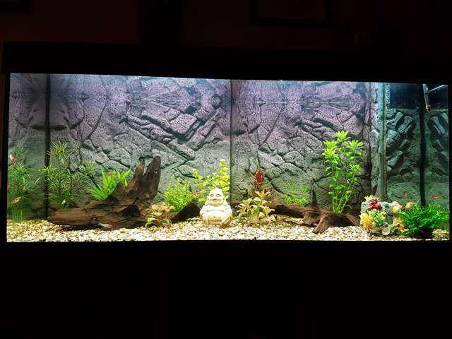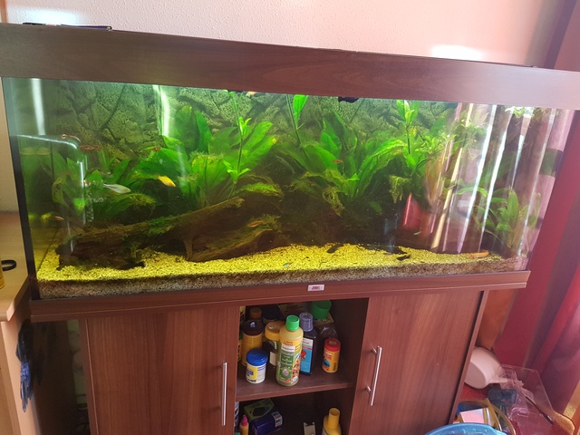 Een tijdje geleden stelde ik me hier voor, heb wat nuttige tips gehad destijds en na een tijdje zoeken kwam ik een 2ehands bak tegen in de juiste maat en kleur. Ben wezen kijken en de volgende dag opgehaald, bak met alles erbij, de bak was behoorlijk verwaarloosd en stonk ook behoorlijk heb hem zo goed mogelijk schoon gemaakt en toen op zijn plek gezet en opnieuw ingericht zodat de vissen zo snel mogelijk weer terug konden in de bak. Op dit moment ben ik tevreden met hoe ik mijn bak heb ingericht en laat ik nu eerst alles maar eens groeien.