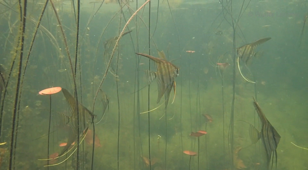 See rummy nose tetras, blue rams, pencil fish, green neons, checkerboard cichlids and others in their natural habitat. Hemigrammus bleheri, Microgeophagus ramirezi, Hemigrammus rhodostomus, Petitella georgiae, Hemigrammus stictus, Hyphessobrycon simulans, Dicrossus filamentosus