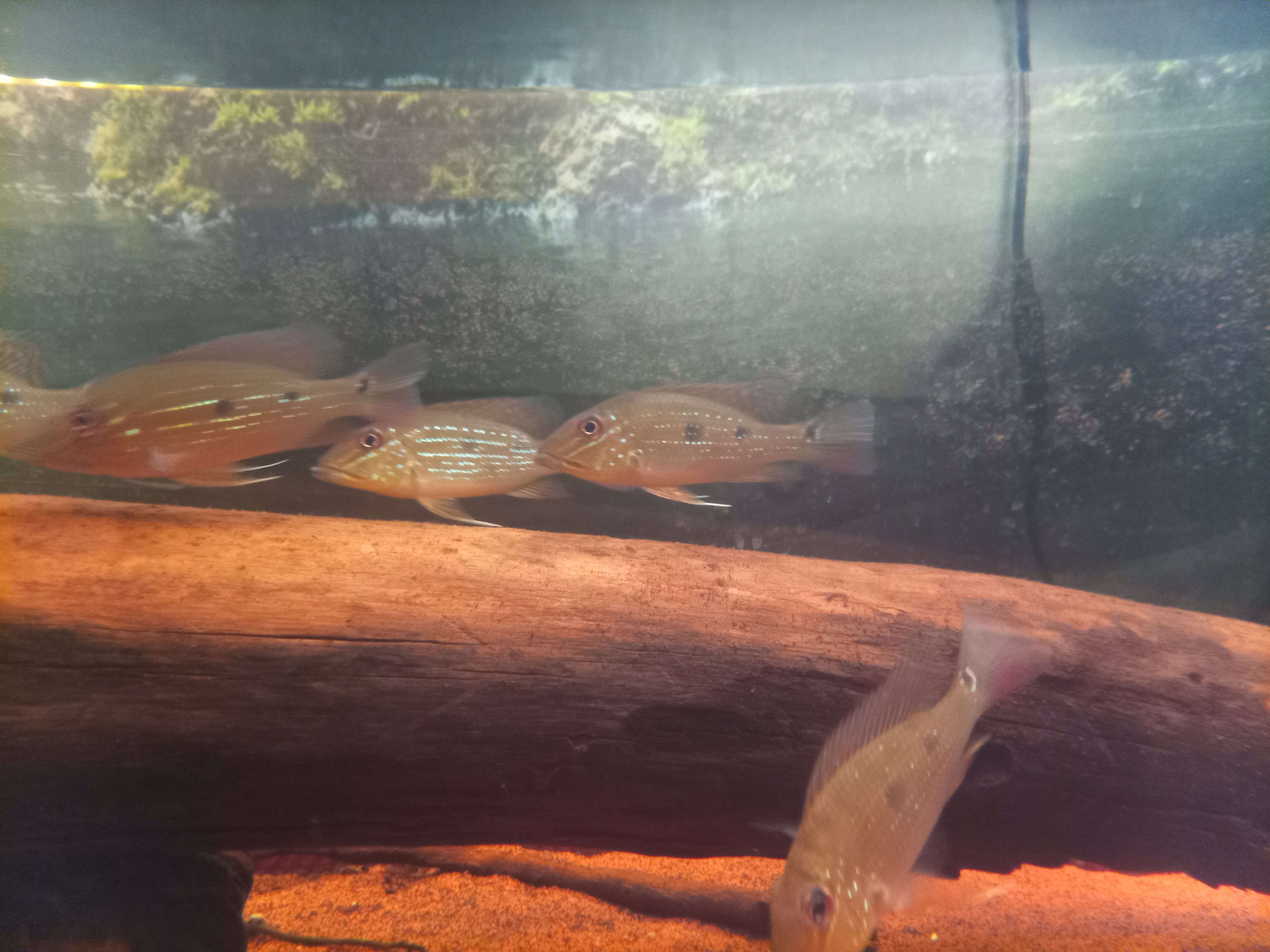 Ik hield al in mijn achterhoofd dat ze uiteindelijk te groot worden voor de 1,20m bak, dat is dan ook de reden dat ik nog geen andere bodemvis in de andere bak toevoeg, de satanoperca daemon doet namelijk ook aan zand filteren en kan vrij territoriaal zijn wanneer ze eitjes leggen heb ik mij laten vertellen.