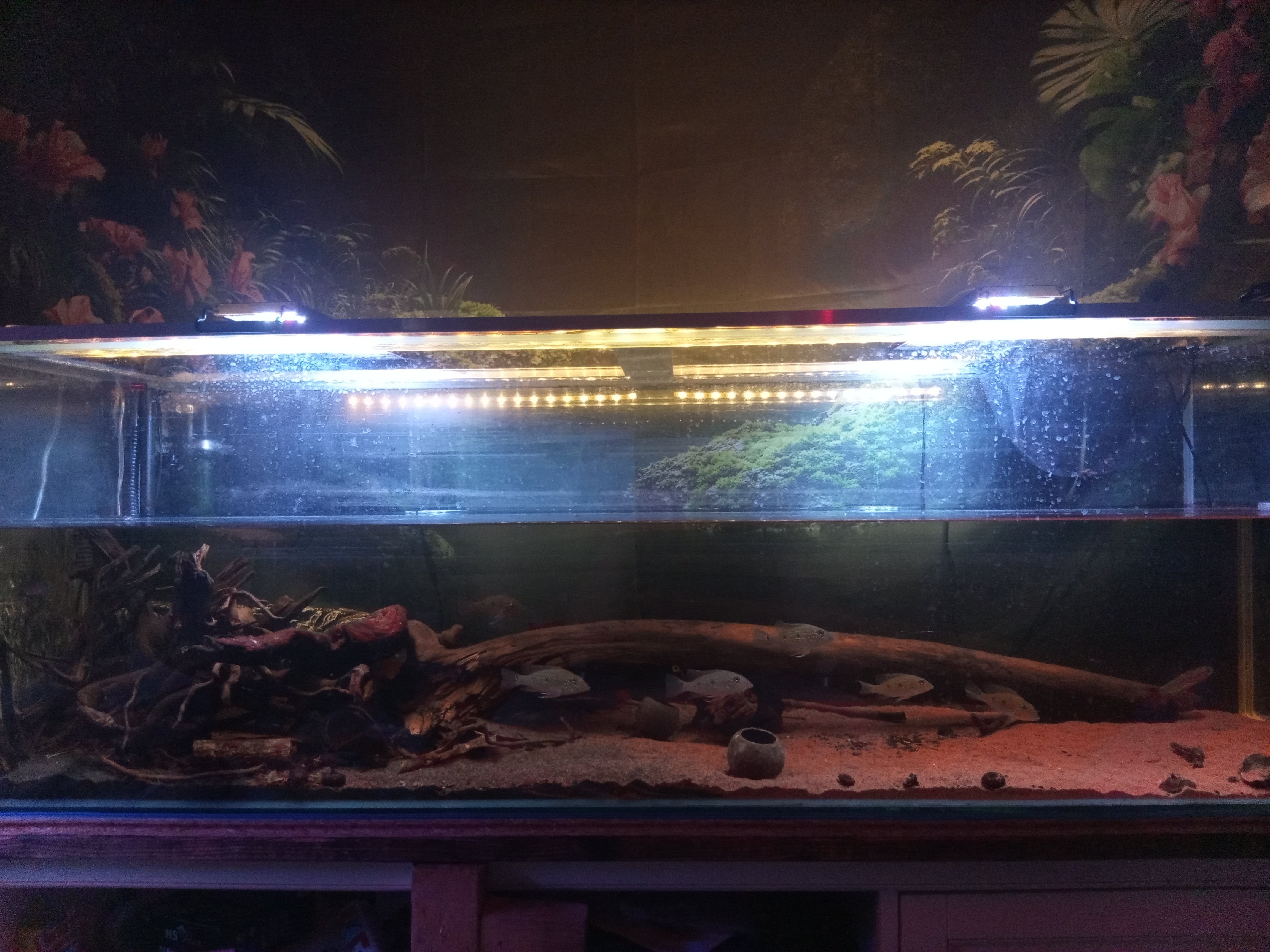 De 120cm is in principe ook vol zat al wil ik daar nog wat bijlzalmpjes in en mogelijk nog wat tetras als ik hem meer vul tot de rand.