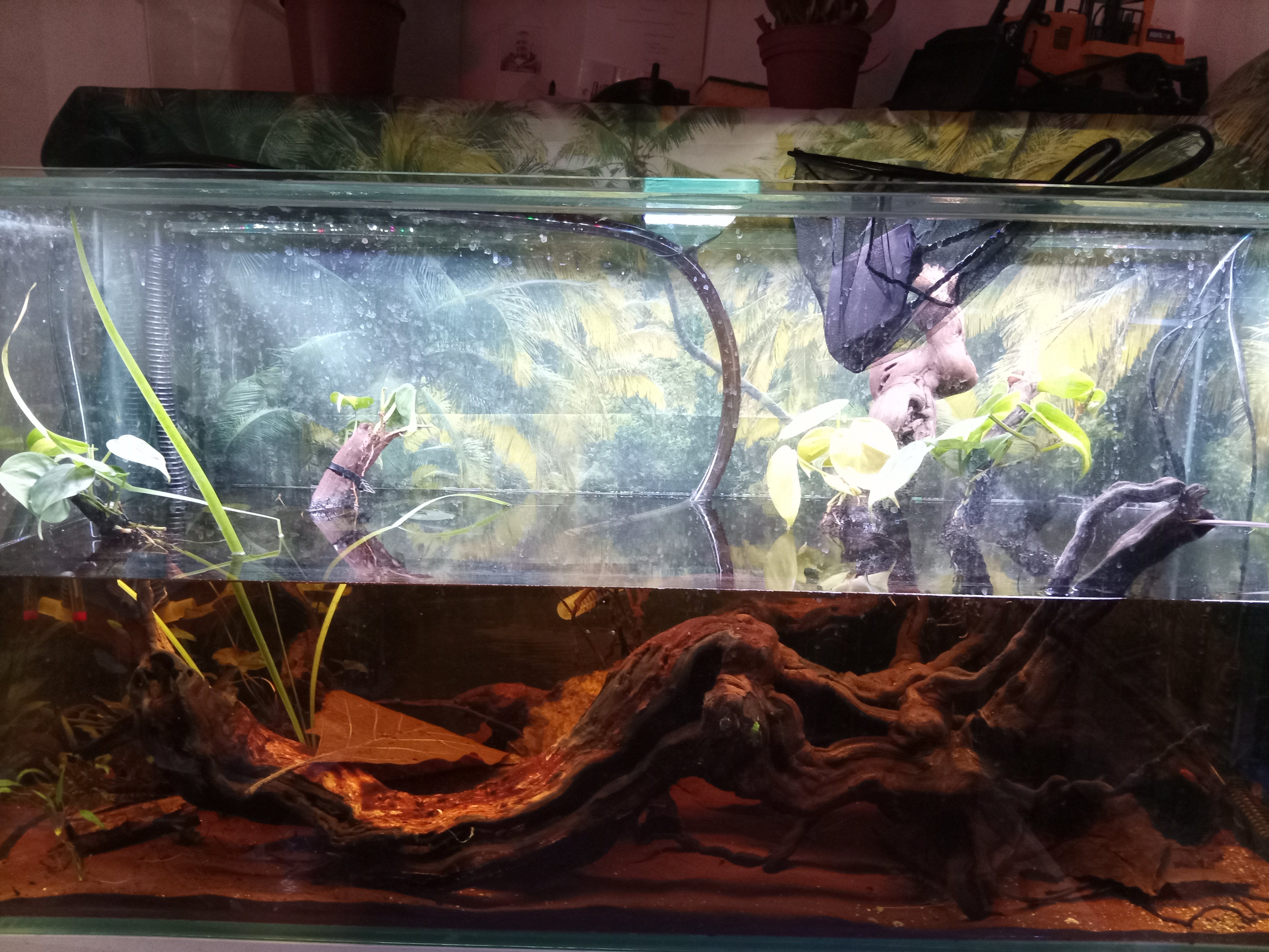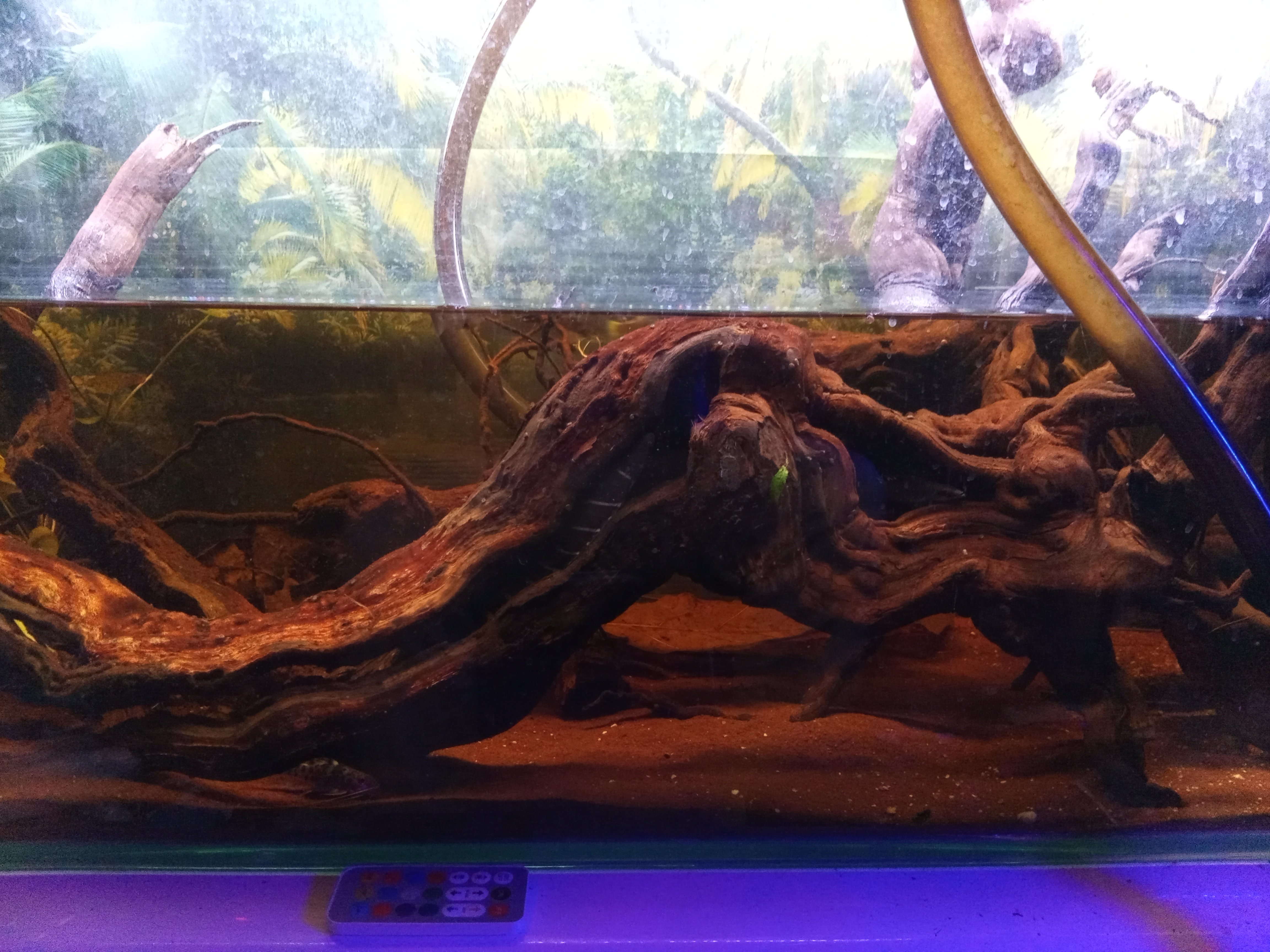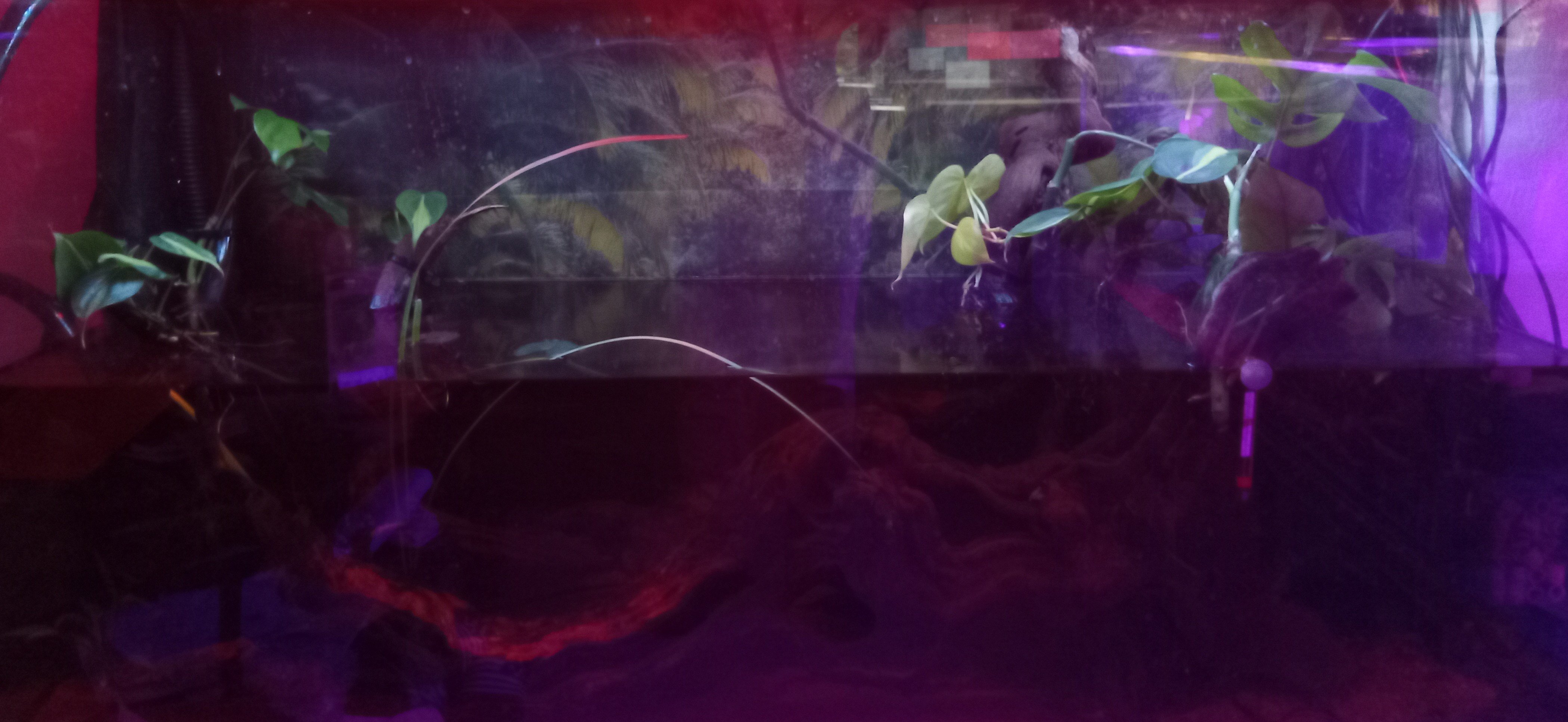 Uit voorzorg heb ik alle plantjes uit de 160cm gehaald en zit daar nu een luchtpompje/steen in, dit omdat de daemons alles omploegen en de pinktail naar verluidt ook aan planten zou knabbelen.