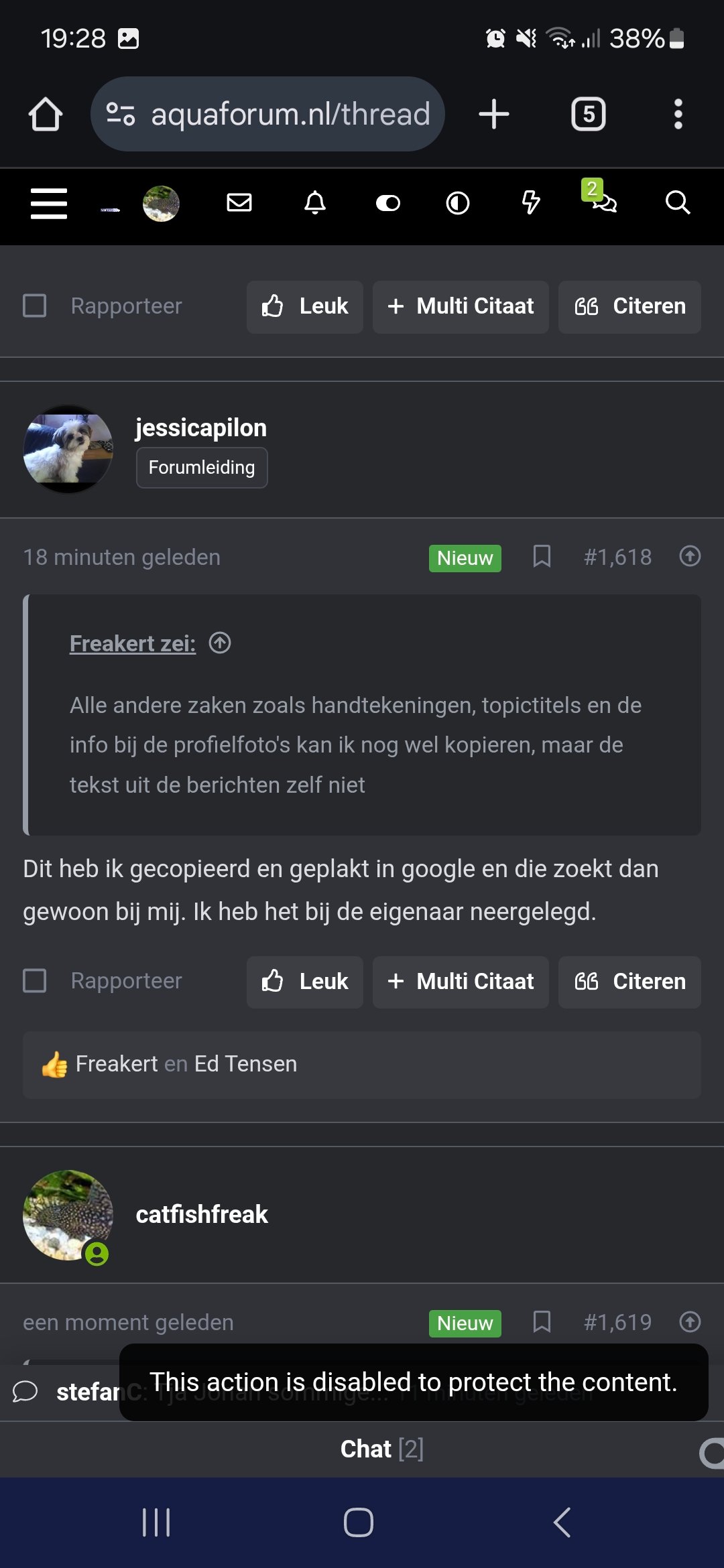 Dit heb ik gecopieerd en geplakt in google en die zoekt dan gewoon bij mij. Ik heb het bij de eigenaar neergelegd.Alle andere zaken zoals handtekeningen, topictitels en de info bij de profielfoto's kan ik nog wel kopieren, maar de tekst uit de berichten zelf niet