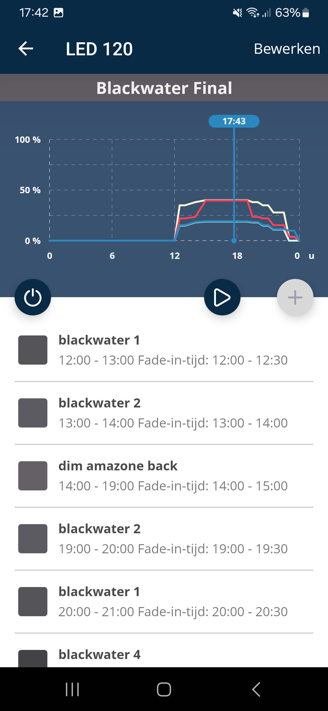 Het aquarium is een Oase highline 400 en wordt gefilterd door een Oase biomaster850 thermo. De verlichting bestaat uit 2 stuks premium led aangestuurd door een eac. De verlichting komt niet boven de 50%. En de voorste lamp brand wat feller dan de achterste. Ik maak veel gebruik van de bewolking die standaard in de Oase app zit. Dit geeft het geheel door de overdrijvende wolken een nog natuurlijker uitstraling.