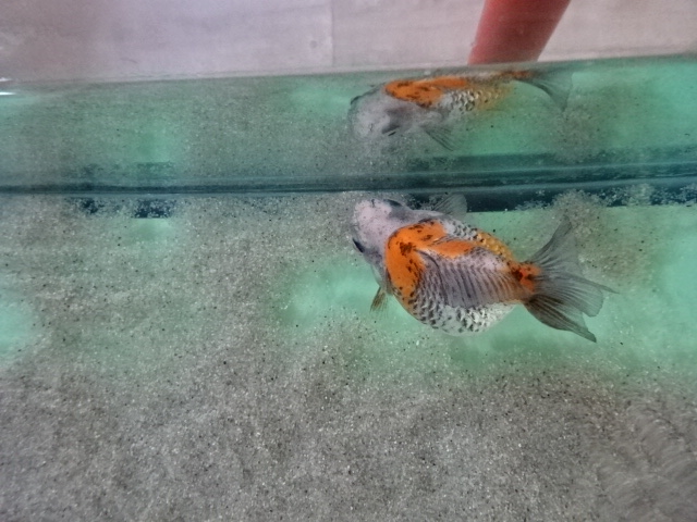 Nu was er afgelopen zaterdagochtend (4e dag na WW) weer een orgie in mijn bak dus zaterdagavond het water ververst. Omdat de Calico last leek te hebben van een gekneusd borstvinnetje (alweer) echter staat ook meteen de staart krom wat ik niet op eerdere filmpjes was tegen gekomen. Ging er dus hardhandig aan toe. IOM Dino toch aan een preventieve medicatie begonnen en de Calico even in de vijvermand wat rust gegeven. Gaat nu weer super.