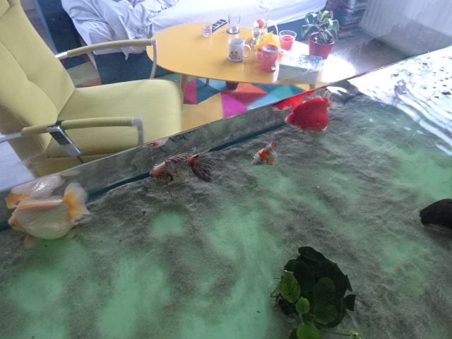 Het enigste te doen is nog enkele stabilisatie buisjes oid er aan te lijmen dat hij stevig tegen de ruit leunt zonder dat de vissen dit omduwen/klem komen te zitten.