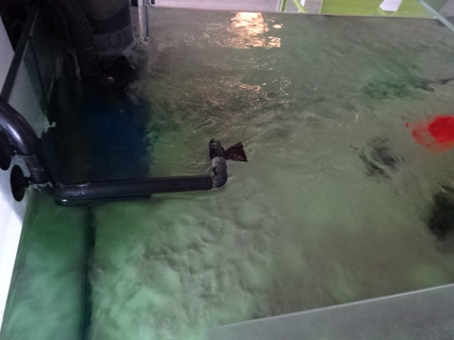 Binnenkort ook de uitstroom verplaatsen/aanpassen. Die zit nu helemaal in de hoek en is niet lekker zo om een goede stroming over de bodem te krijgen ik denk dat die zeker ca15-20cm van de wand af moet voor een echte circulatie. Dit heb ik nu even onvervangen door de luchtsteen ernaast te zetten. Met een JBL701 voor gravelvac zou het opnemen van het mechanisch vuil dan ook opgelost zijn.