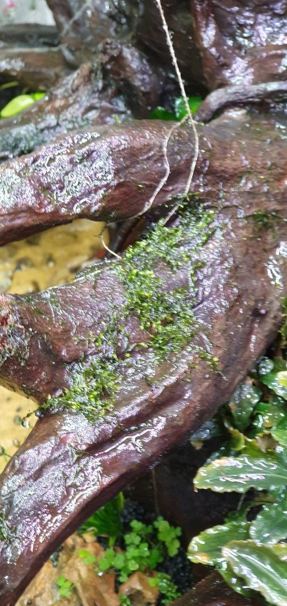 Hier is Fissidens op een stuk mopani hout aangebracht en na 6 weken staat het onderwater.