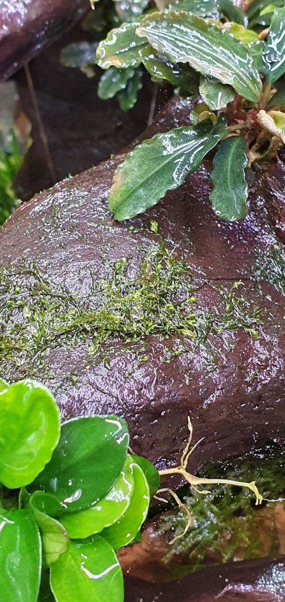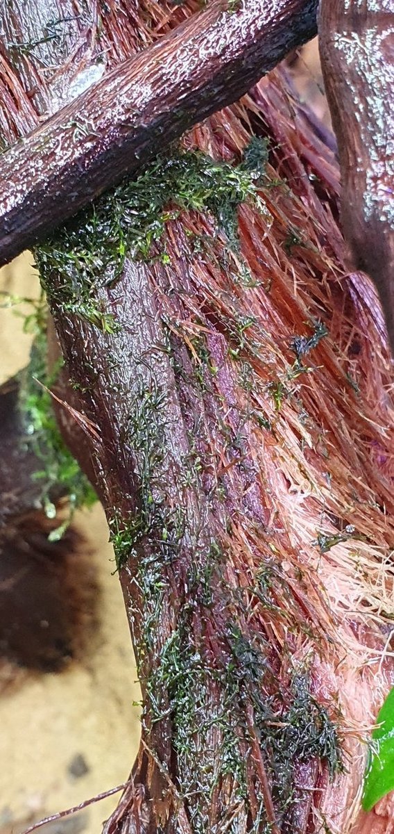 Kleinere soortjes zoals Fissidens en Riccardia zijn praktisch lastig op te binden. Bij vermeerdering word dit wel gedaan natuurlijk. Op een mesh,
