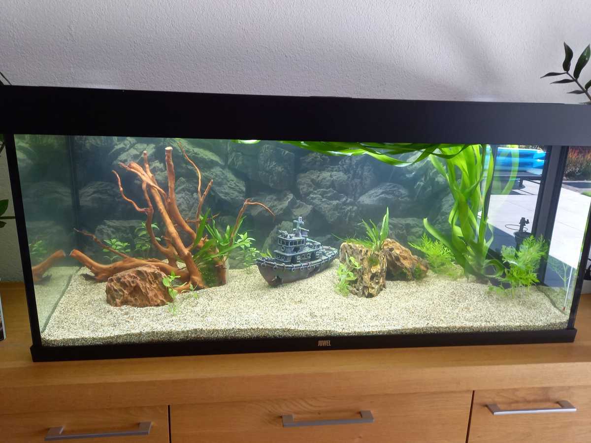 En nu wachten, wachten en wachten. Hopen dat je zoons geduld hebben dat is niet altijd even gemakkelijk voor vele. Ws. ga je straks bruine aanslag zien, geen paniek dat zal opstart alg wezen. Het hout kan ook wat gaan schimmelen. Ben je alvast geestelijk voorbereid en er niemand overhaast naar de LFS spurt voor een flesje wondermiddel. ;))