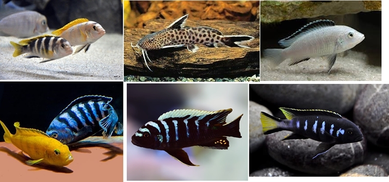 Pseudotropheus saulosi, Cynotilapia afra ndonga south, Metriaclima elongatus chewere