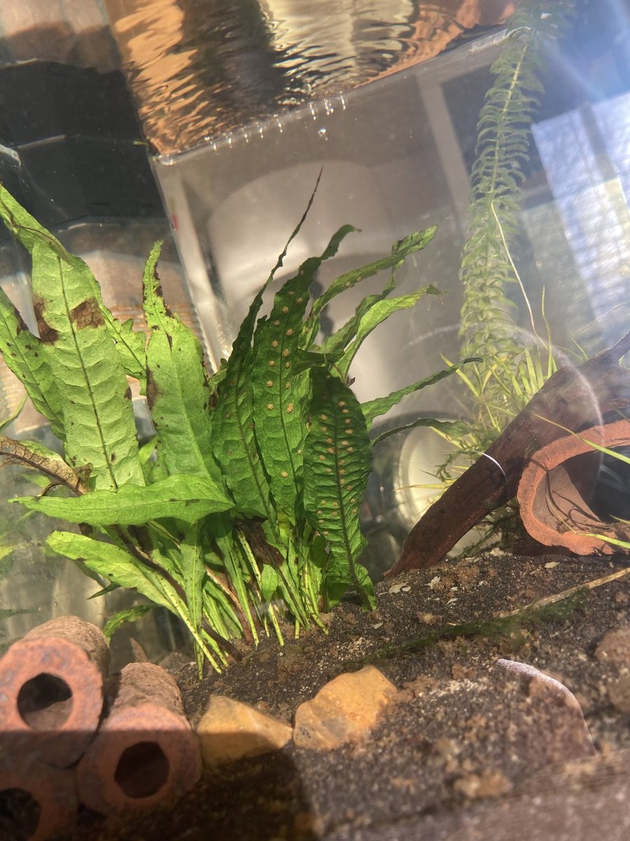 Hoi. Ik ben nieuw en heb al een aantal maanden een bak staan met cpo kreeftjes. Nu in het goeie licht ontdek ik deze (schimmel)? Denk ik op deze plant. Wie weet wat dit is en hoe ik dit oplos?