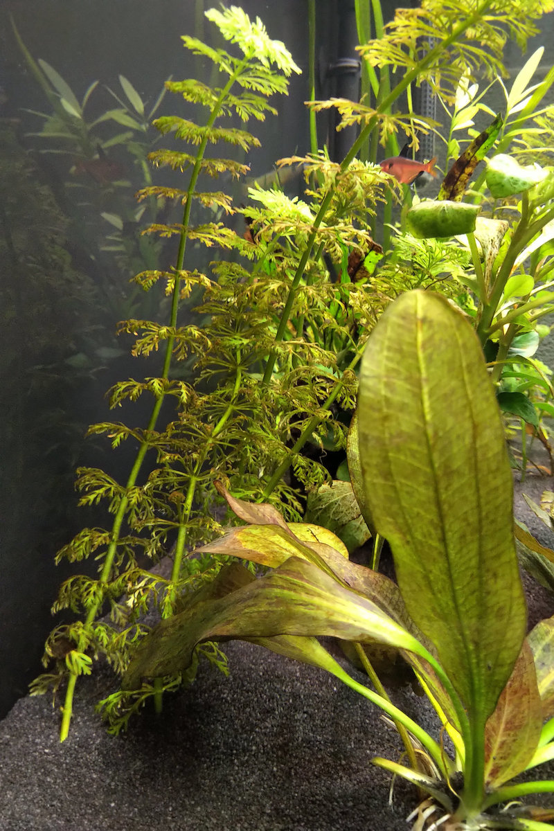 Helaas is door de bruinalg Pogostemon Helferi compleet vergaan, er was weinig van over, alsof het opgelost was, dus om verrotting te voorkomen, al de nog overgebleven stukje wortels verwijderd.