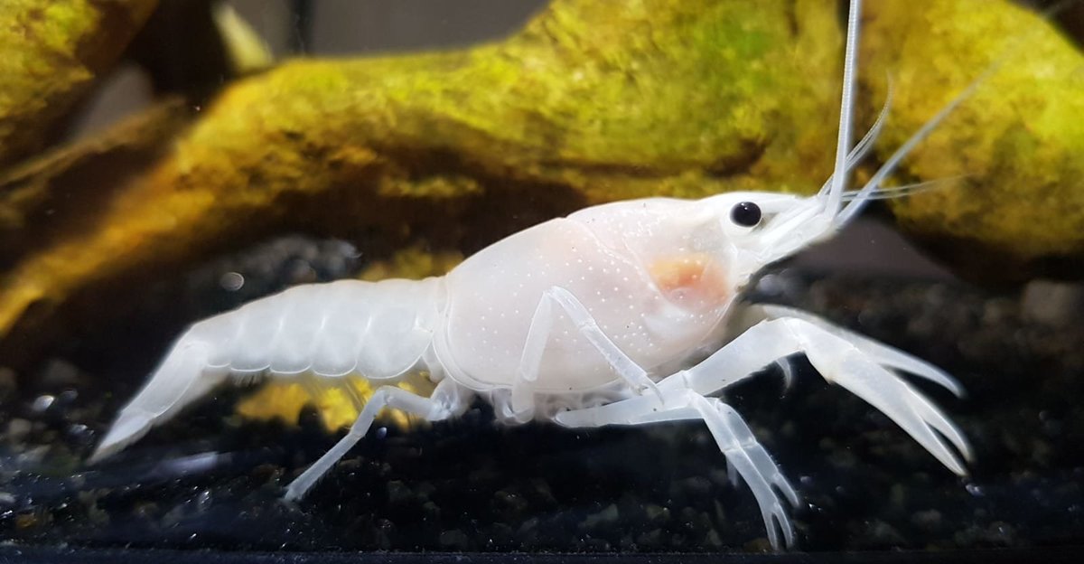 Ik heb ongeveer 3 maanden geleden een jonge (2-3 cm) Snow White Floridakreeft (Procambarus alleni) in huis gehaald. Ze is nu al ongeveer 6 cm lang, dus ze groeit goed!