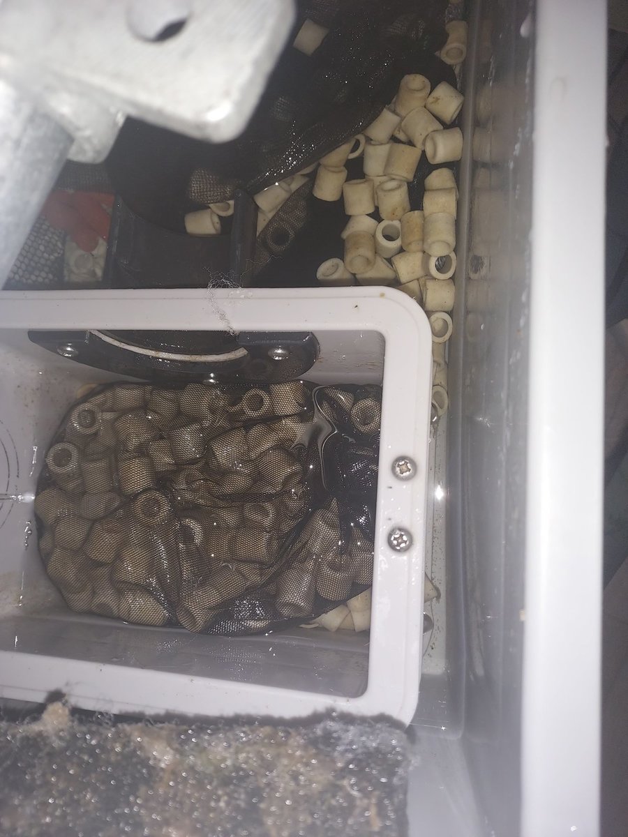 Heb een nieuw aquarium geplaatst en heb nu al twee soorten zand getest, twee keer jbl sansibar, eerste keer de lichte variant, qua samenstelling wel ok, stuift niet super, maar veels te licht van kleur voor mijn gevoel. De vissen(en ik) hadden pijn aan de ogen, contrast met de zwarte achterwand was ook (te) groot. Dan maar de sansibar dark erin, die had ik al in m'n vorige maar nu zelfs met de vliesfilter draaiende merk ik dat het water niet superstrak doorzichtig kan krijgen. Die sansibar dark is antraciet-grijs en blinkt een beetje, dat zorgt er mede voor dat zwevende deeltjes onder de ledbalken erg oplichten. En ja, ik heb fgf en die foerageren heel erg, maar ook zonder de vissen had ik de indruk dat het nooit superhelder was. De uitstroomopeningen(3) staan nu gewoon bovenaan en totaal niet schuin gericht ofzo, het zijn alledrie 32mm openingen, dus de stroming valt heel erg mee, pomp staat op ongeveer 4 à 5000l/u.