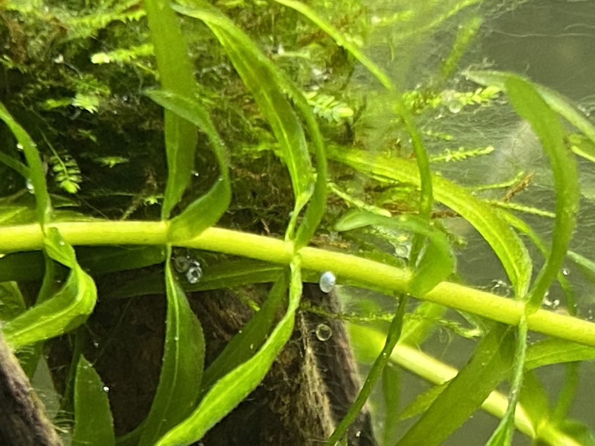Ondertussen woekeren de drijfplanten en valisneria het aquarium door. Ik wilde ze afgelopen weekend wat snoeien en groeperen maar ik zag ook baby regenboogvisjes in het grote aquarium zwemmen, en iets dat leek op eitjes van de corydoras dus ik heb het plan maar even laten varen.