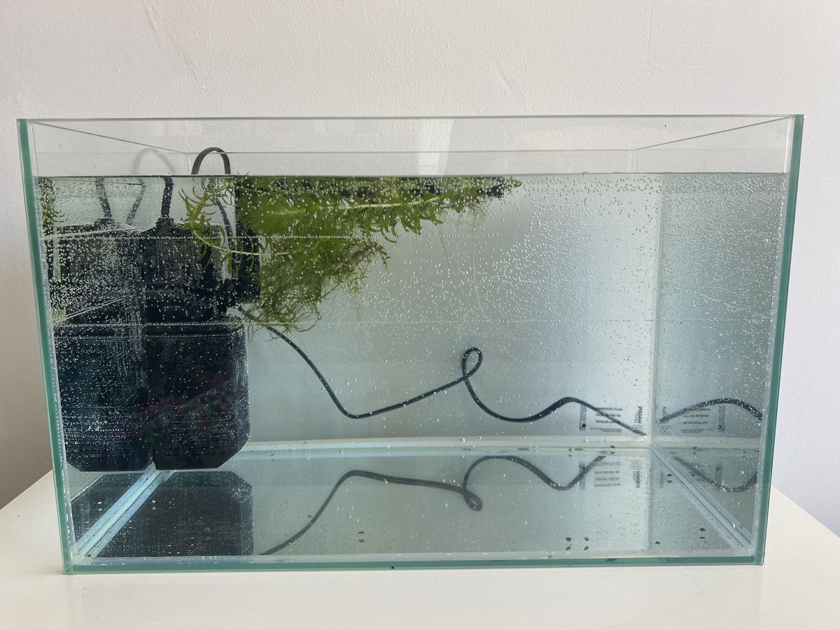 Ik gebruik hem nu eerst om een nieuwe lading regenboogvisjes op te kweken, voor nu zijn het nog eitjes. En wil er daarna een garnalen bakje van maken. Ik wil dan echt wat speciale garnaaltjes er in doen. Iemand hier in de buurt bied oranje rili’s aan, die vind ik wel heel leuk. Maar tegen die tijd ga ik eerst eens wat rondkijken bij verschillende winkels en het bakje mooi inrichten.