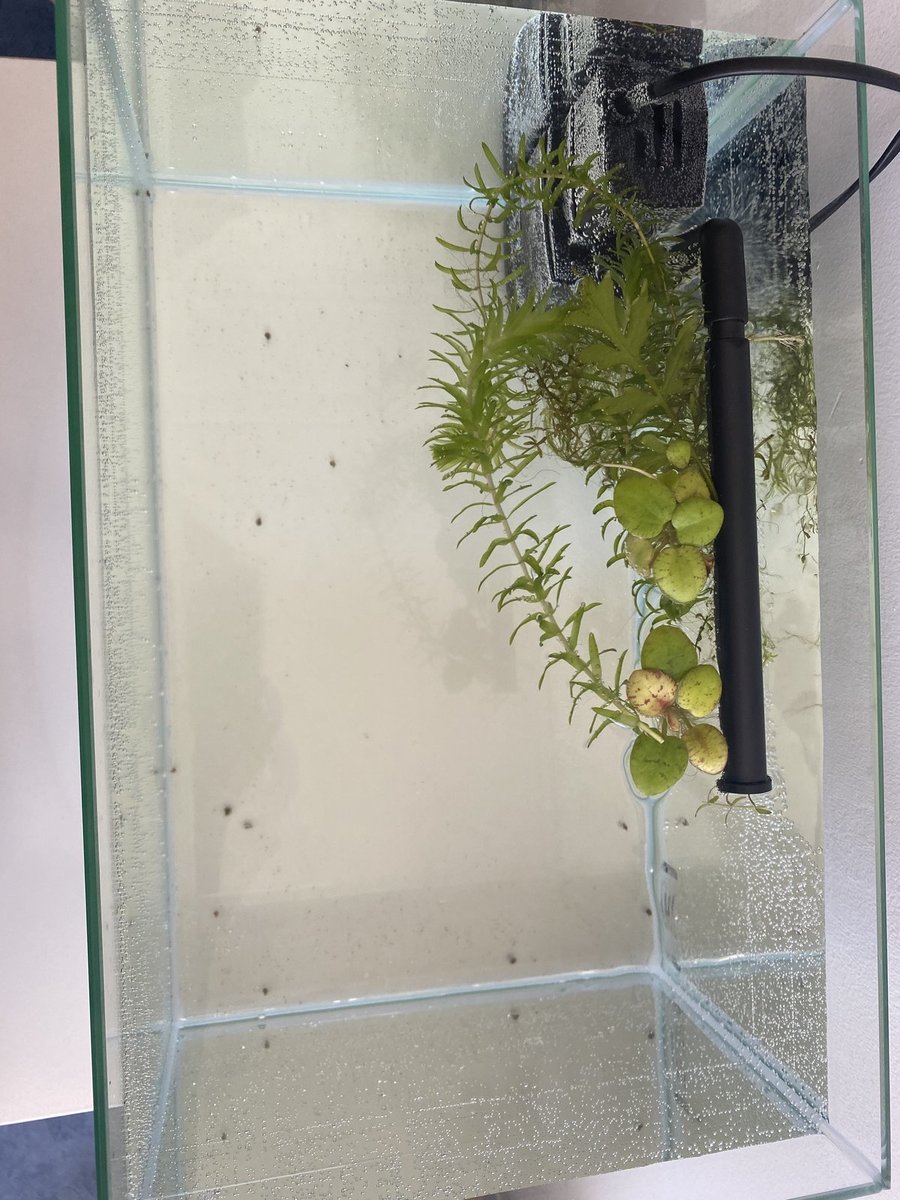 En ondertussen ben ik weer in dezelfde valkuil gestapt. Ik heb heel goed gekeken deze keer met het overzetten van plantjes en ik wist zeker dat ik slechts 4 glazige eitjes zag. 5 dagen later en ik heb al 6 visjes plus nog minstens 4 eitjes met oogjes 🙄 Ze zijn nog super klein, maar eens zien hoeveel er overleven.