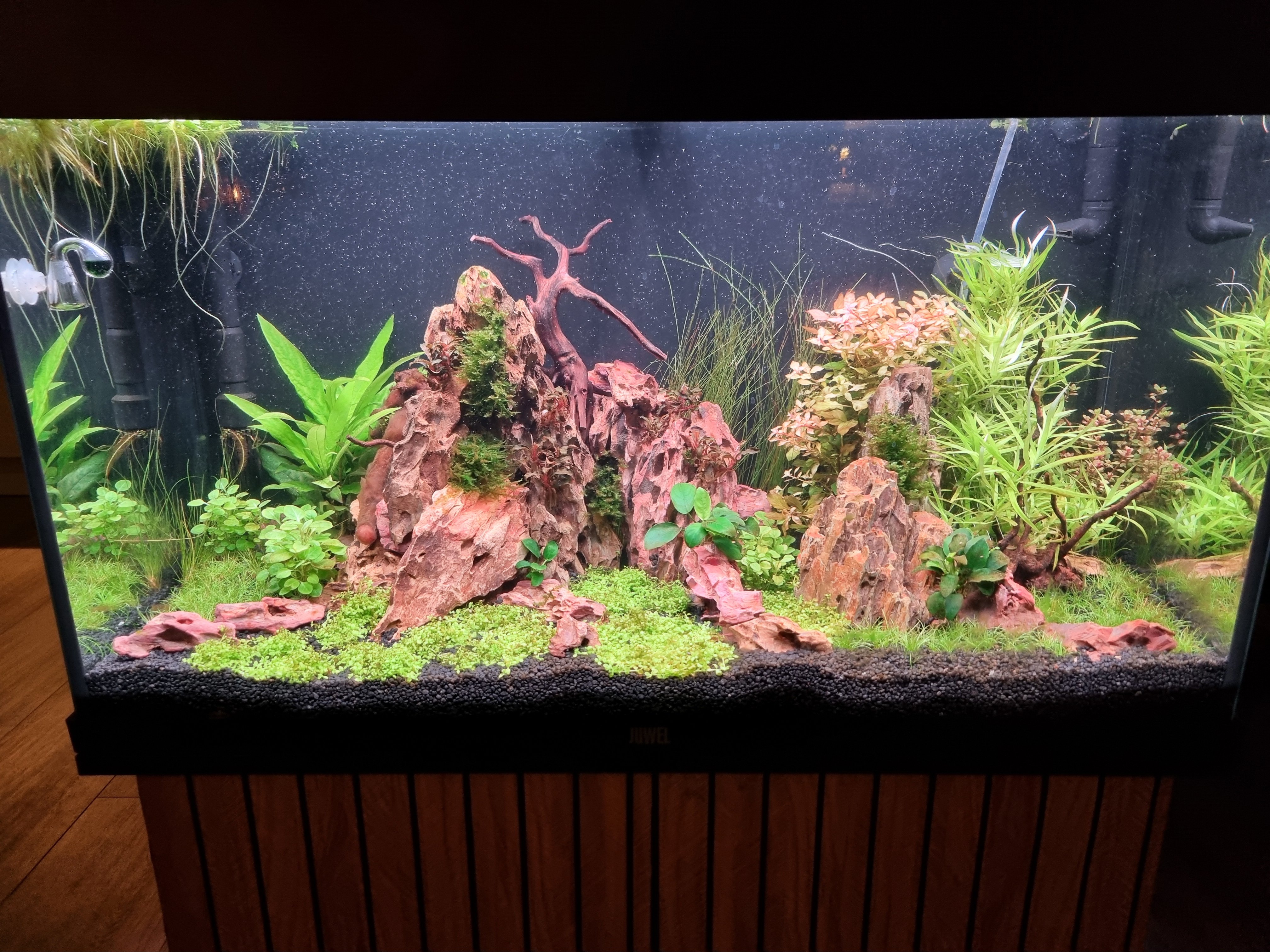Ik heb verder opgevoerd. Zo staat m'n bak er vandaag bij. Ik vind, zoals jullie kunnen zien op de afbeelding, dat er wel erg veel co2 bellen door mn bak gaan. Ik vind dit eigenlijk niet zo'n mooi gezicht.
