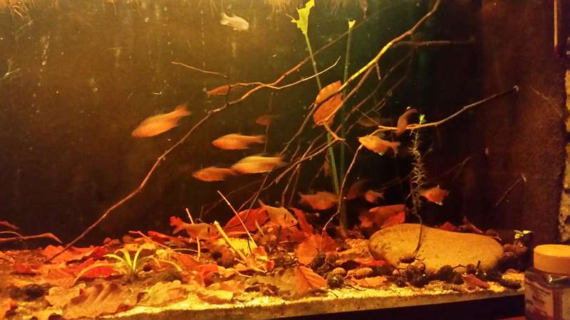 de vissen die ik in dit bakje wil gaan houden is een groepje hypoptopoma inexpectatum (5 stuks denk ik) en een klein schooltje corydoras hastatus (stuk of 10/12)