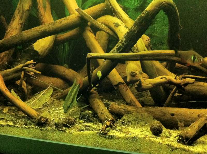 Ik wordt ook echt niet panisch van een beetje rommel in deze bak. Het hoort er idd gewoon een beetje bij. Het was mijn keus om de natuur zoveel mogelijk na te bootsen en daar horen vergane bladeren ook bij. Ergens heeft het ook wel weer wat. De vissen hebben er geen last van dus laten we het lekker zo.