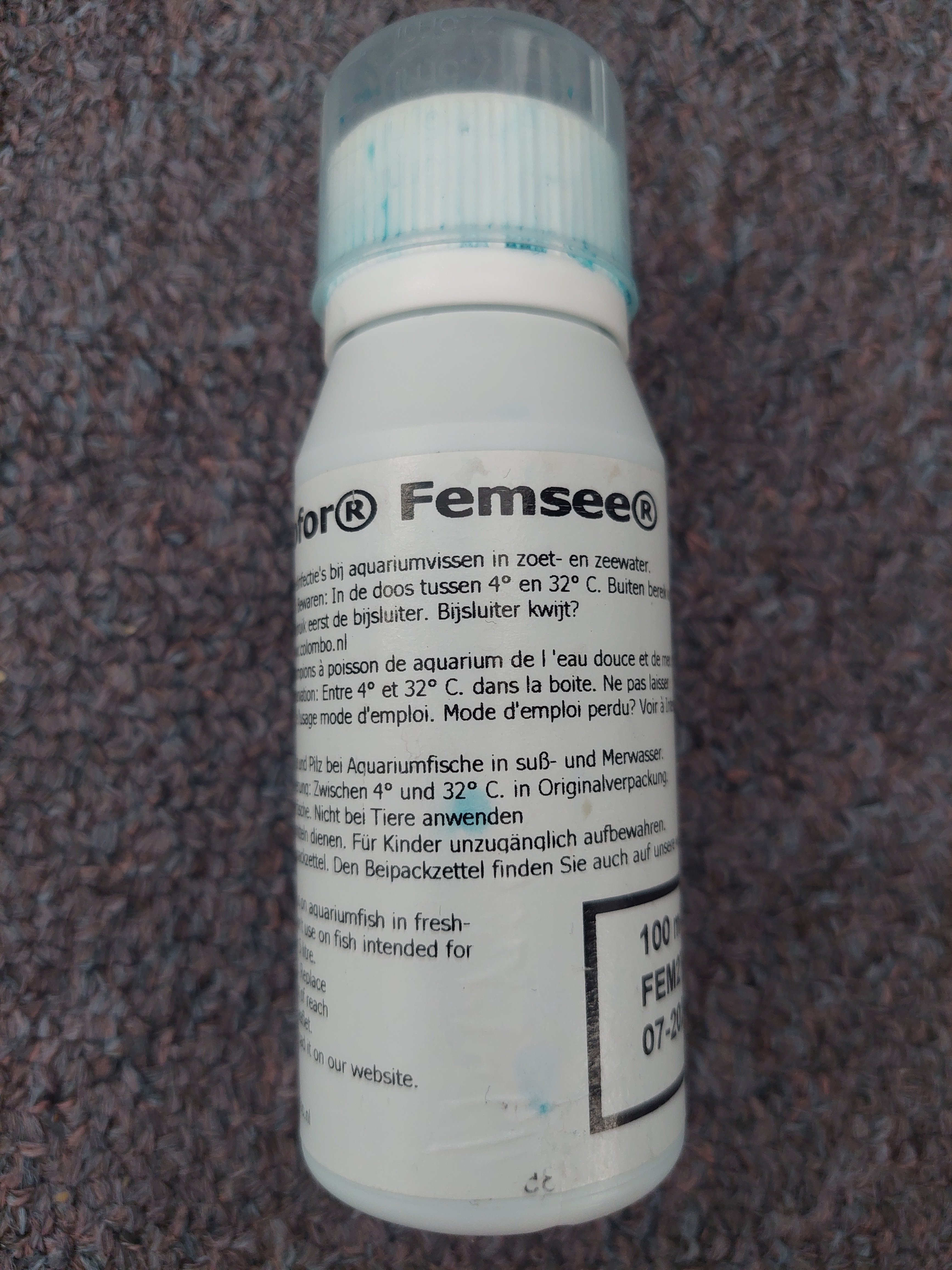 Beetje 'context': de antennebaarsjes heb ik net ongeveer 3 weken, ik kocht ze in een dierenwinkel (DierTotaal) omdat zij altijd heel veel verstand bleken te hebben van aquaria en vissen (ook hebben zij een heel groot assortiment van aquaria benodigdheden en vissen). De antennebaarsjes waren op de dag dat ik ze kocht net binnengekomen, maar ik merkte op dat ze allemaal witte vlekjes/ tipjes hadden. Hiernaar gevraagd met angst voor wittestip, maar de verkoper beweerde dat deze schimmel vlekjes erg normaal bij antennebaarsjes zijn en dat die na een tijdje weg zouden gaan, toch kreeg ik de tip om een kuur bij te doen voordat ik ze binnenlaat in de aquarium. Omdat de visjes al in een zakje zaten en ik de uitleg van de verkoper geloofde, besloot ik de visjes mee te nemen en ze in een kleine quarantaine bak te stoppen met de kuur/ medicijn voor schimmel + wittestip (een algemeen medicijn voor deze twee dingen van de merk 'Colombo' (?) (Cerpofor en Femsee).
