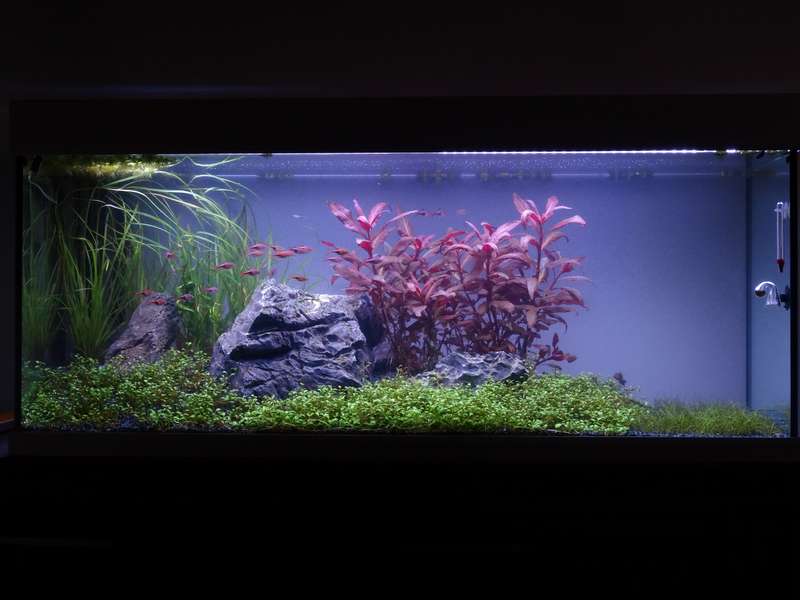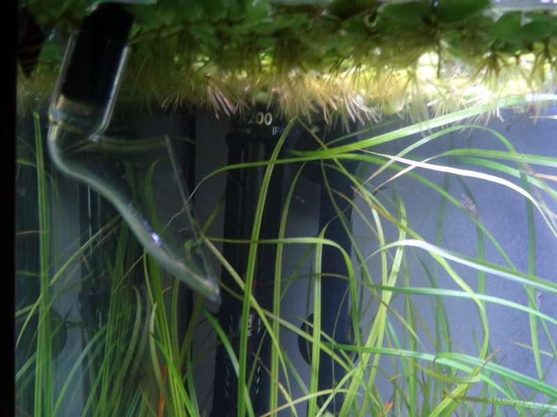 Output heb ik verplaatst m.b.v. stukje slang en wat 90 graden bochtjes. Haal er vanavond nog een klein stukje slang tussenuit wat niet meer nodig is nu de outflow weer links zit. En ik denk dat ik nog 1 90 graden bochtje gebruik om het hoekje bij de kap wat netter af te werken. De drijfplantjes camoufleren de zuignapjes dus je ziet er inderdaad vrijwel niets van.