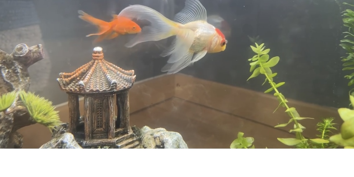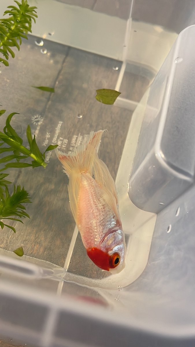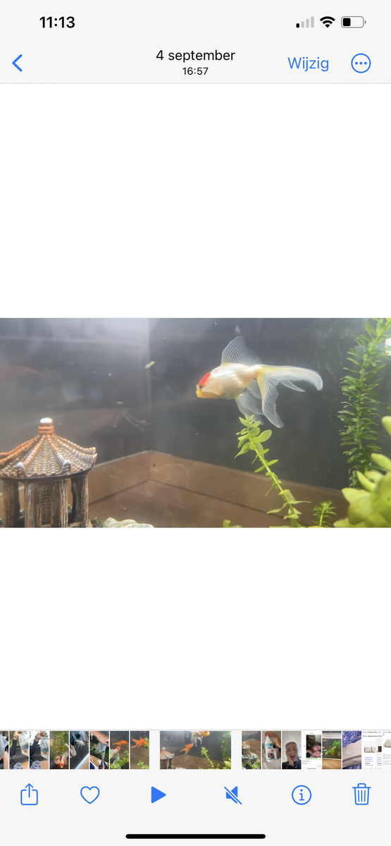 Dit vond ik al raar. Maar toen ik vervolgens naar mijn sluierstaart keek was zijn halve staart opeens weg. Ik dacht meteen dat de andere hem opgegeten had, aangezien zij nog niet zo lang bij elkaar zitten. De sluierstaart drijft nu op zijn zij, wat mij liet denken aan zwemblaas, maar dat is het denk ik niet.