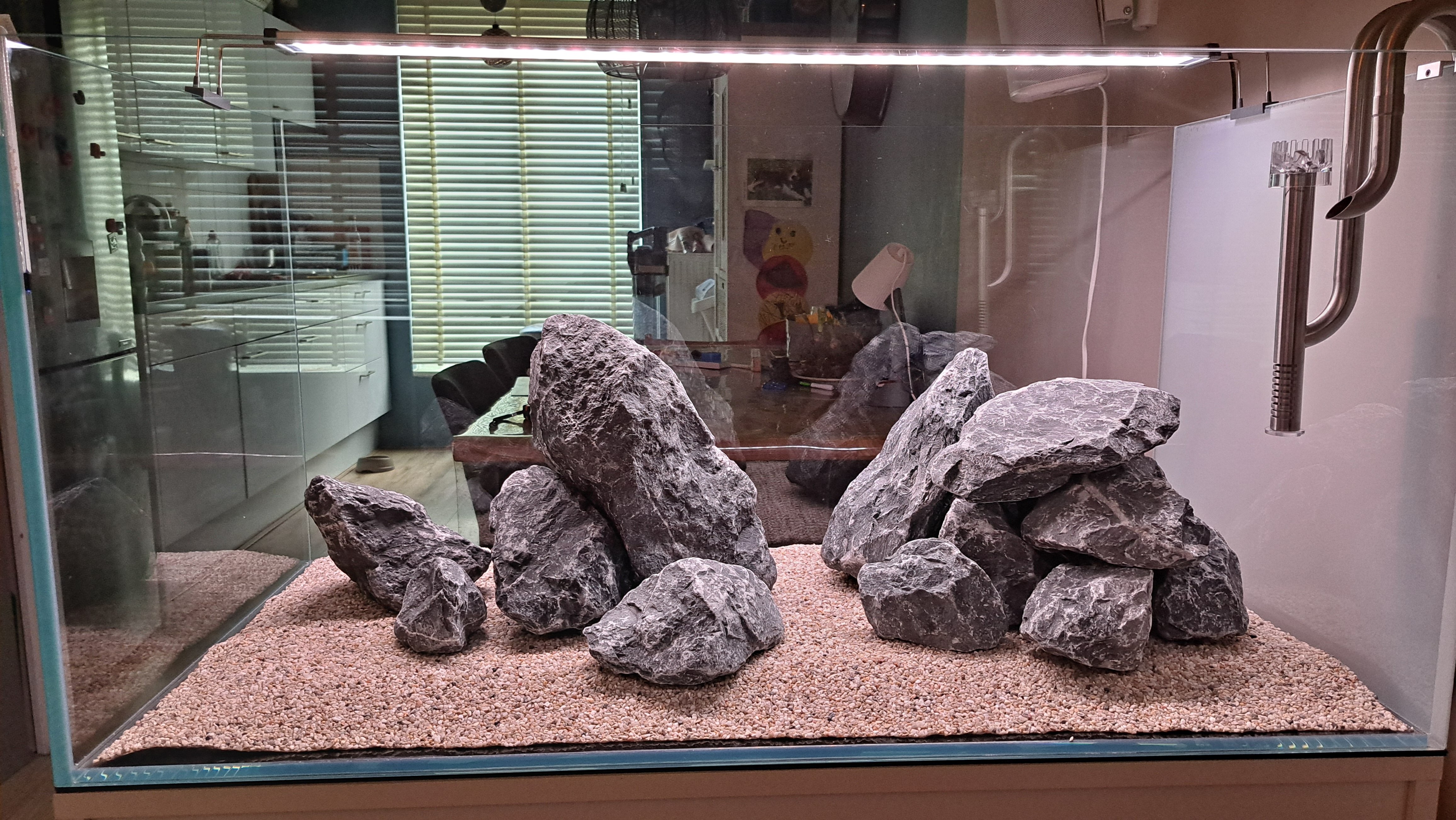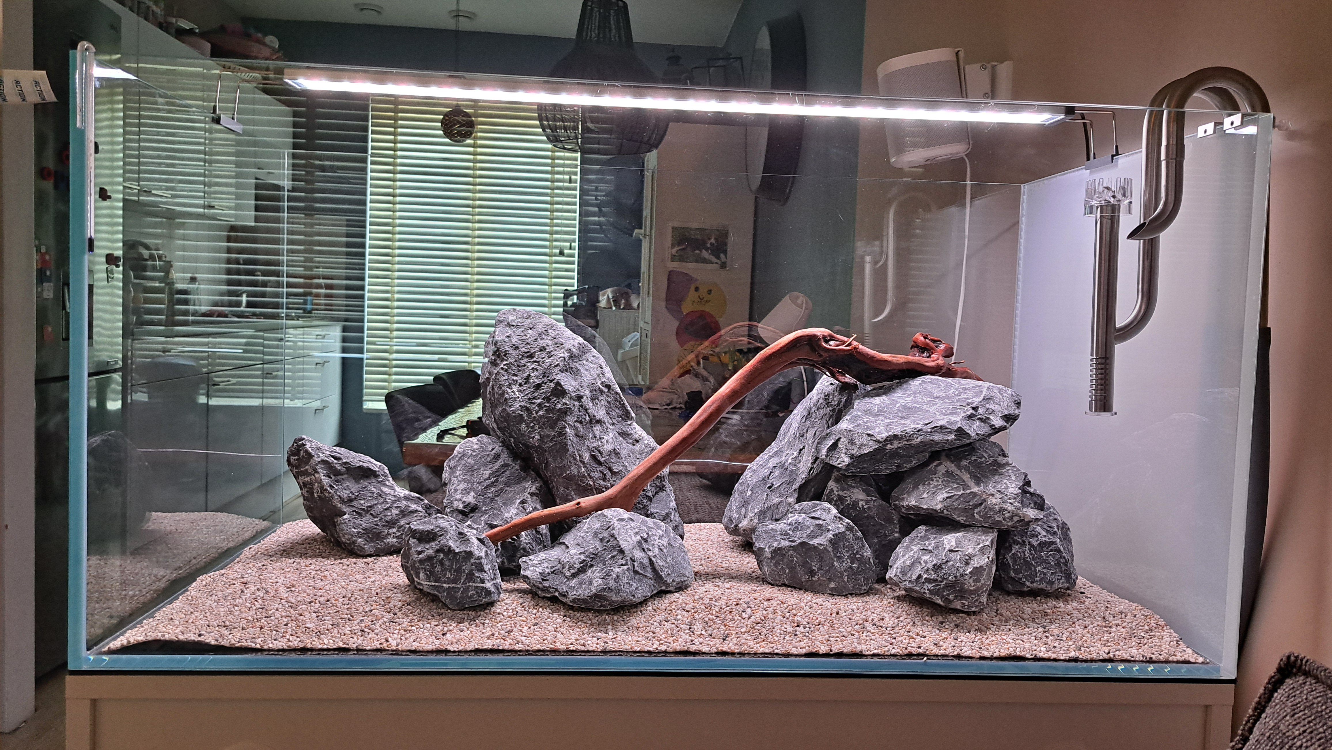 Het idee van dark was om de kans op alg in een voor 80% bak zonder planten te minimaliseren...