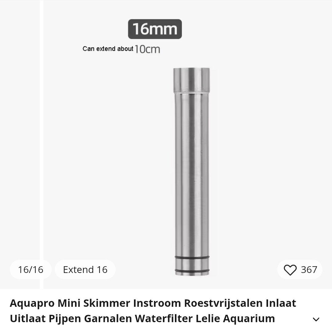 Even een plaatje van internet gehaald, maar ik heb zelf deze gekocht via de welbekende Chinese website. Skimmer aan de uitstroom ipv instroom en instroom is ook te verlengen. Misschien is dat wat voor je? Weet niet of het lang genoeg kan.