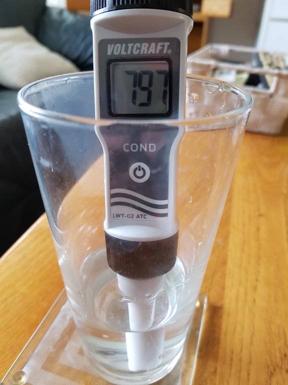 Zo zeg, hier zit ik ergens tegen de 500 uS aan als ik me goed herinner en met de oude osmose was dat 20uS. Nu met de nieuwe en de DI filter is dat 0.