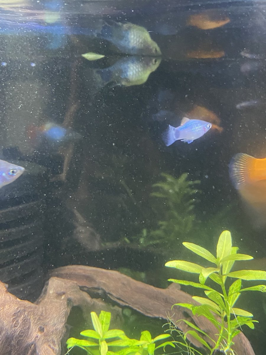 Ik zit nog een keer je foto's te bekijken, en ik vind het lastig om te zeggen of je vissen een ziekte hebben of niet, want ik heb zelf geen ervaring met deze vissen. Je platy die aan de oppervlakte hangt vind ik wel zorgelijk. Is dat dezelfde vis die op een eerdere foto in dit topic lange witte slierten lijkt te poepen? Eet ze nog?