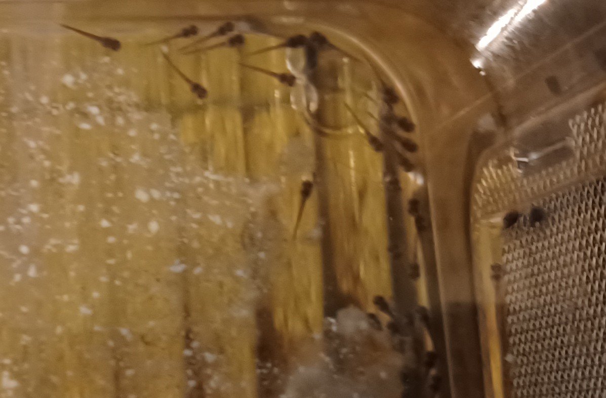 Ik heb bij de tweede foto een paar larfjes aangewezen, als iemand zich geroepen voelt om alle jonkies in beeld te tellen: ga je gang!