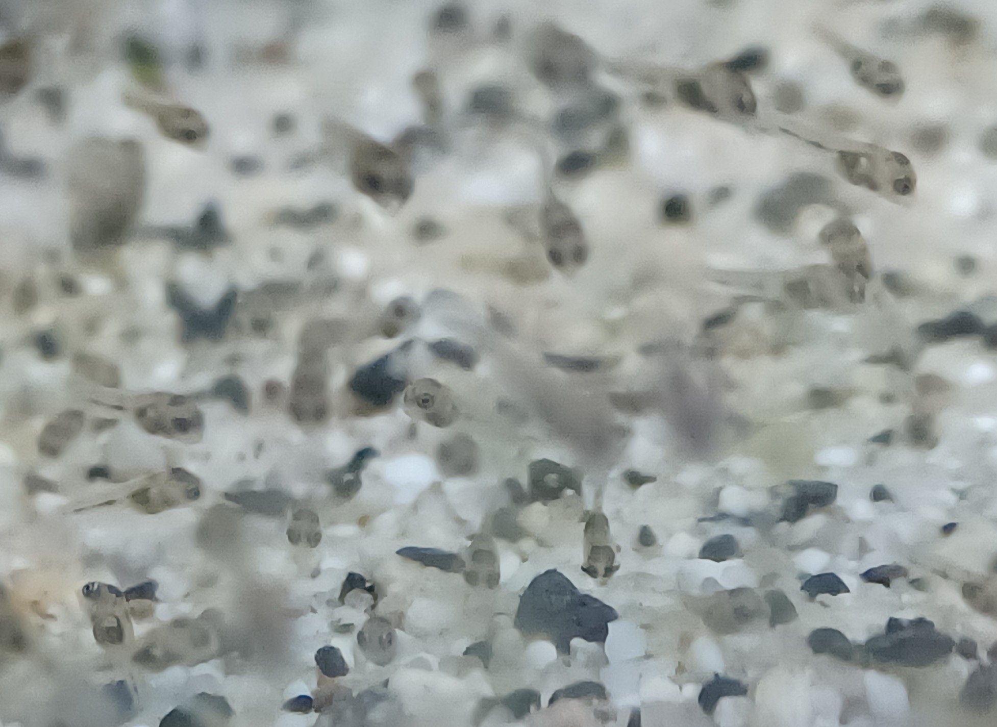 De eerste dagen was er door een hittetrilling (je weet wel zo'n waas boven de weg op een hete dag) duidelijk dat er niet alleen water en wat grind in het bakje aanwezig was. Op een gegeven moment kwamen de dapperste af en toe los van de grond, nadat ze zich afzetten met de staart.