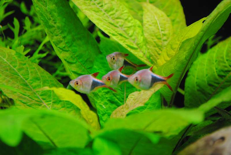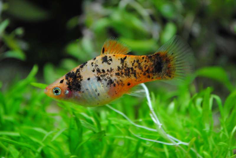 De platy's en guppy's snoepen tenminste graag van de bladeren.