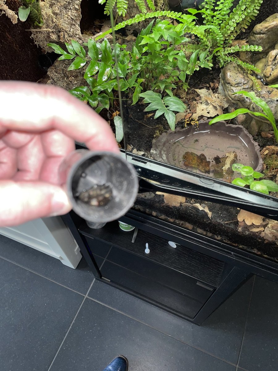 De kikkertjes zijn dr ook blij mee zo te zien, heb er wel een ander pompje in gezet. De originele gaf niet veel water. Dus via Conrad een wat krachtiger versie gekocht.