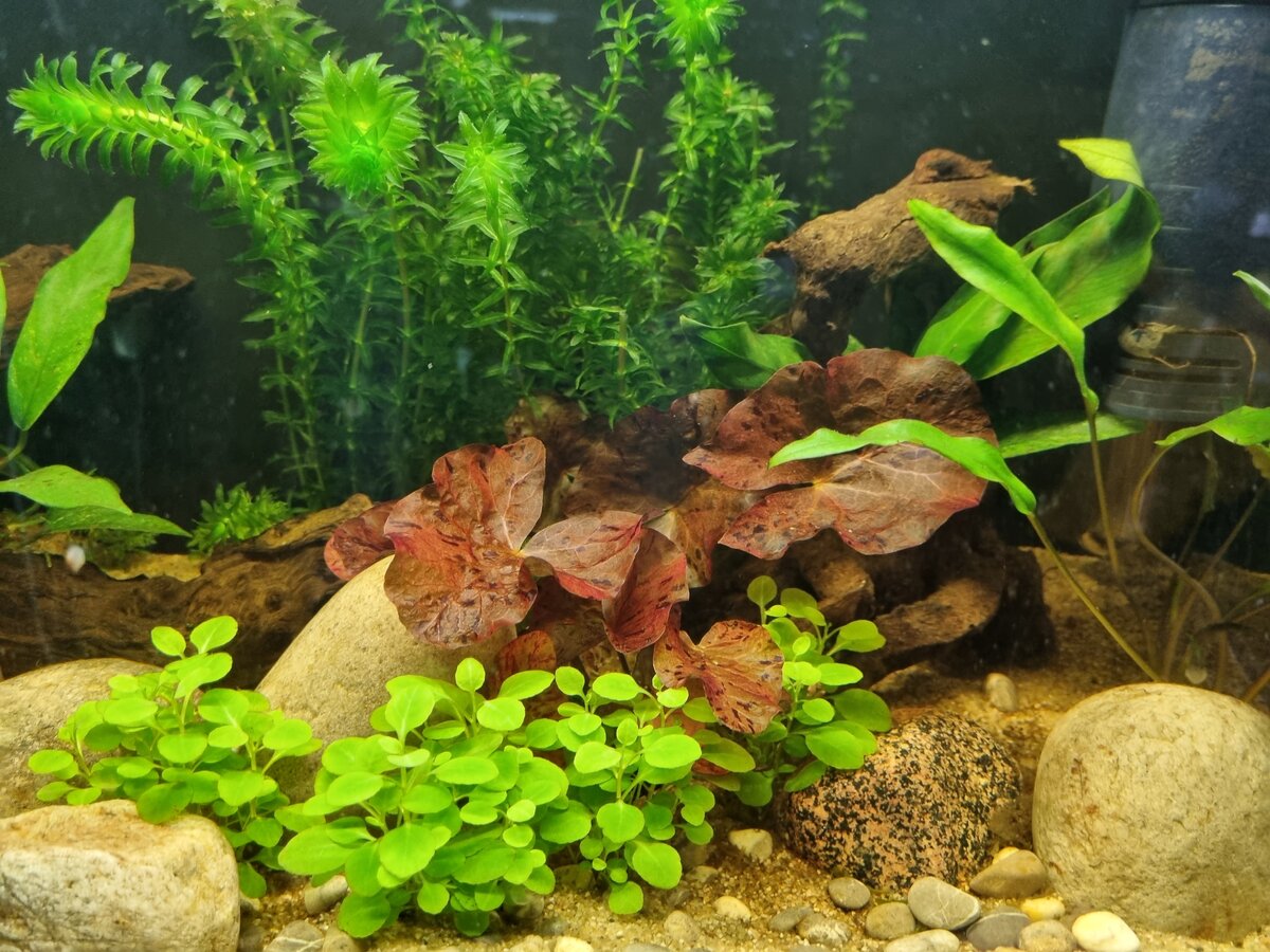 Momenteel heb ik 3 otocinclus, 10 Afrikaanse blauwoogjes, 2 dario tigris en ongeveer 15 citroen garnalen