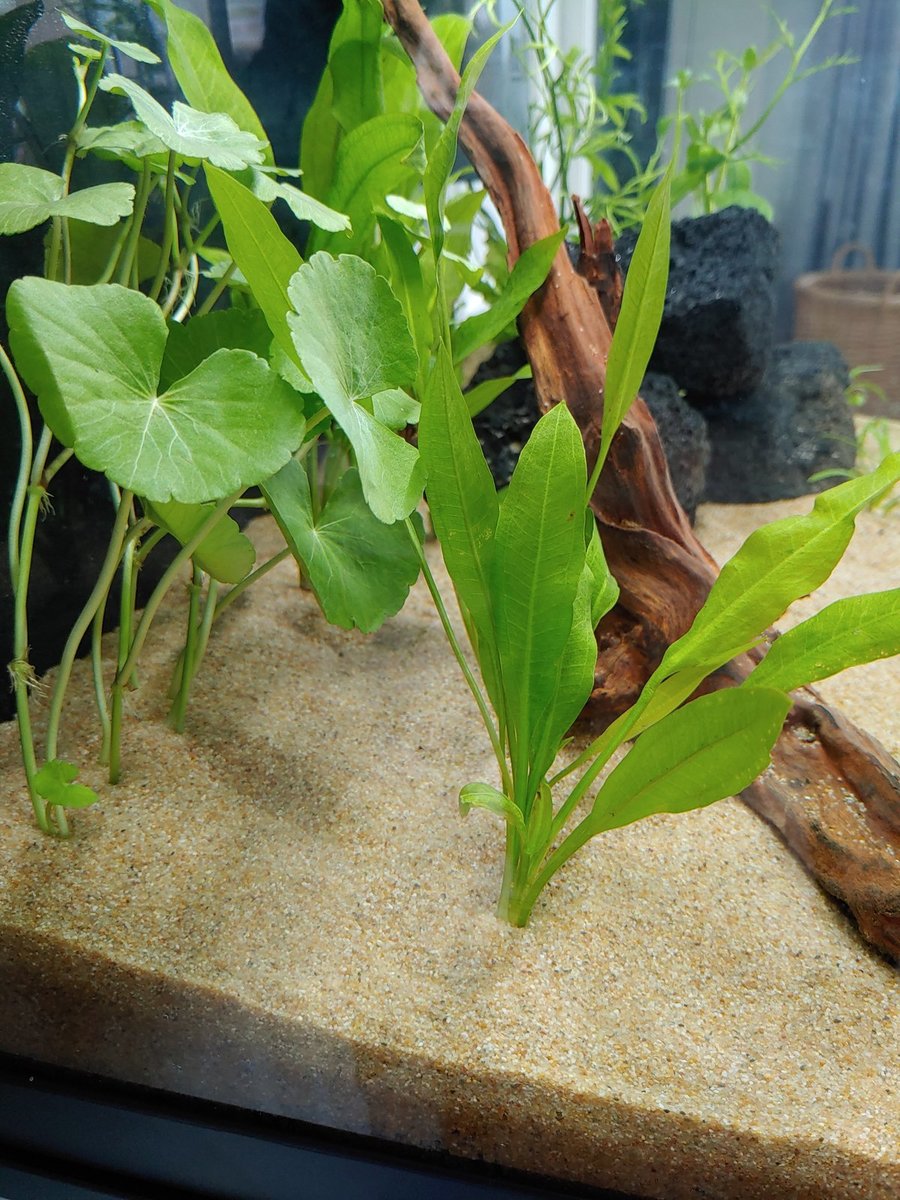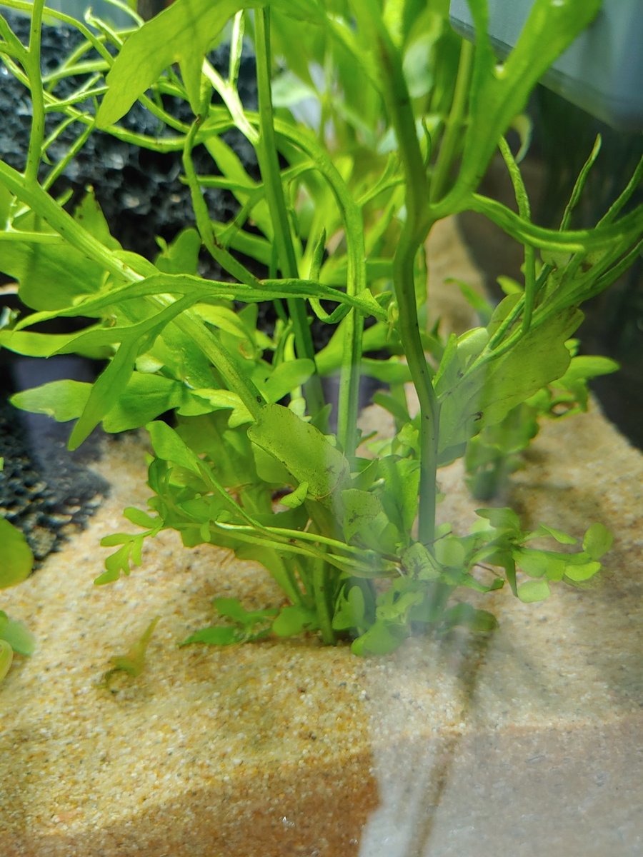 Wat betreft de plantjes wil ik graag jullie advies. De bladeren die erg bruin worden, kan ik die beter wegsnoeien? Of ook gewoon laten zitten? Van wat ik heb begrepen moeten de planten overgaan van de bovenwater-vorm naar de onderwater-vorm (emers naar submers?). Dus dat het ook geen kwaad kan om de "oude" blaadjes weg te snoeien om de groei van nieuwe blaadjes te stimuleren. Tot nu toe heb ik alleen blaadjes weggesnoeid die al volledig dood waren. Hieronder wat foto's van de plantjes die bruin worden: