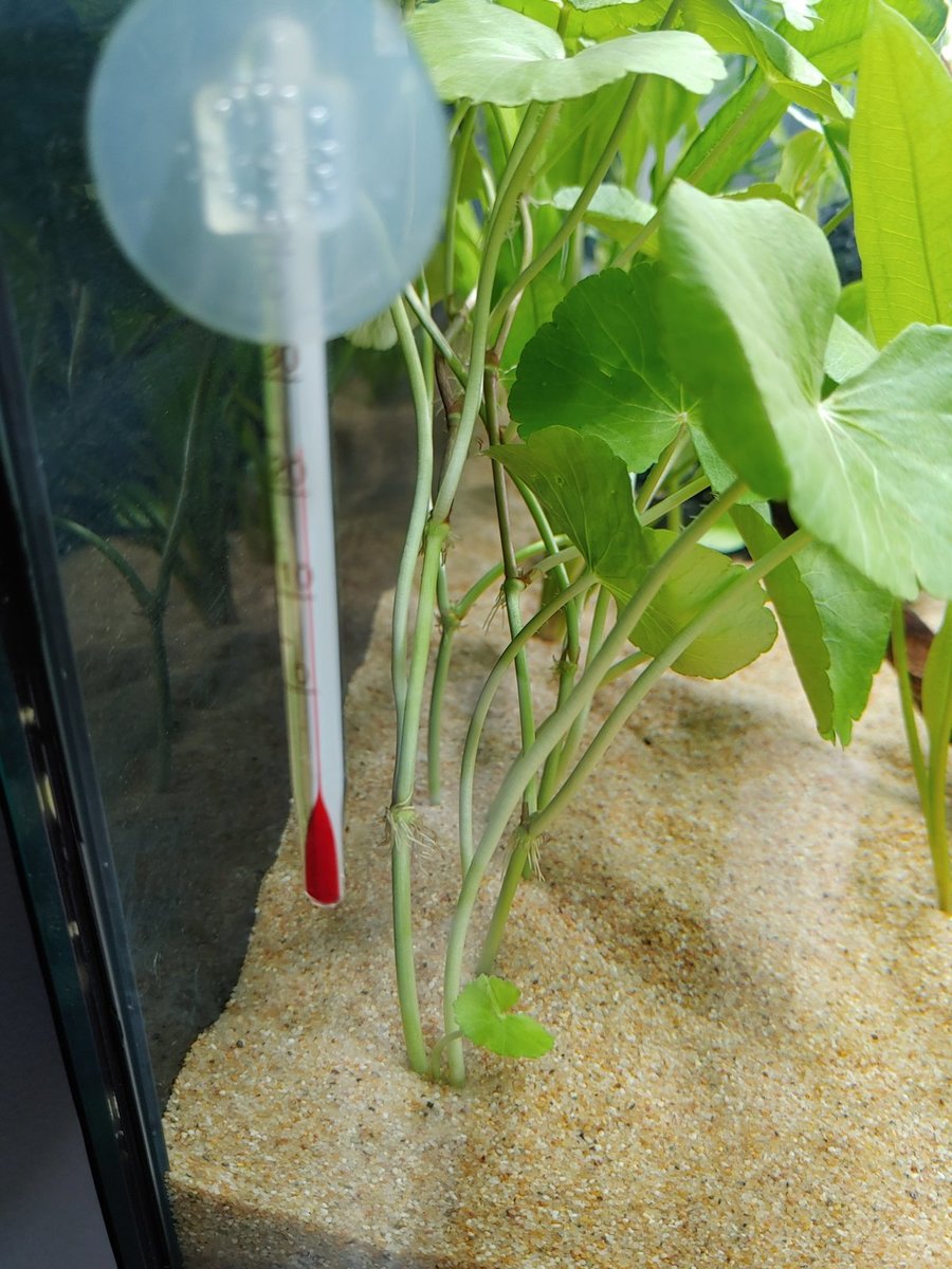De temperatuur heb ik voor nu op 24 graden gezet. Ik heb een thermometertje opgehanden aan de linkerkant van het aquarium en die geeft tot nu toe telkens mooi 24 graden aan.