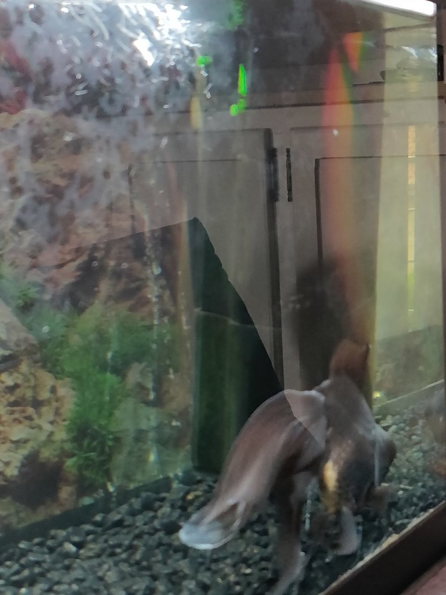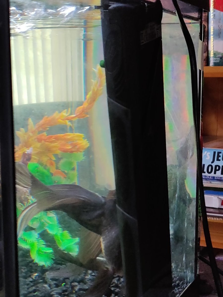Onze andere sluierstaart hebben we gisteren moeten laten inslapen dus we hebben er nu maar 1 in het aquarium zitten.