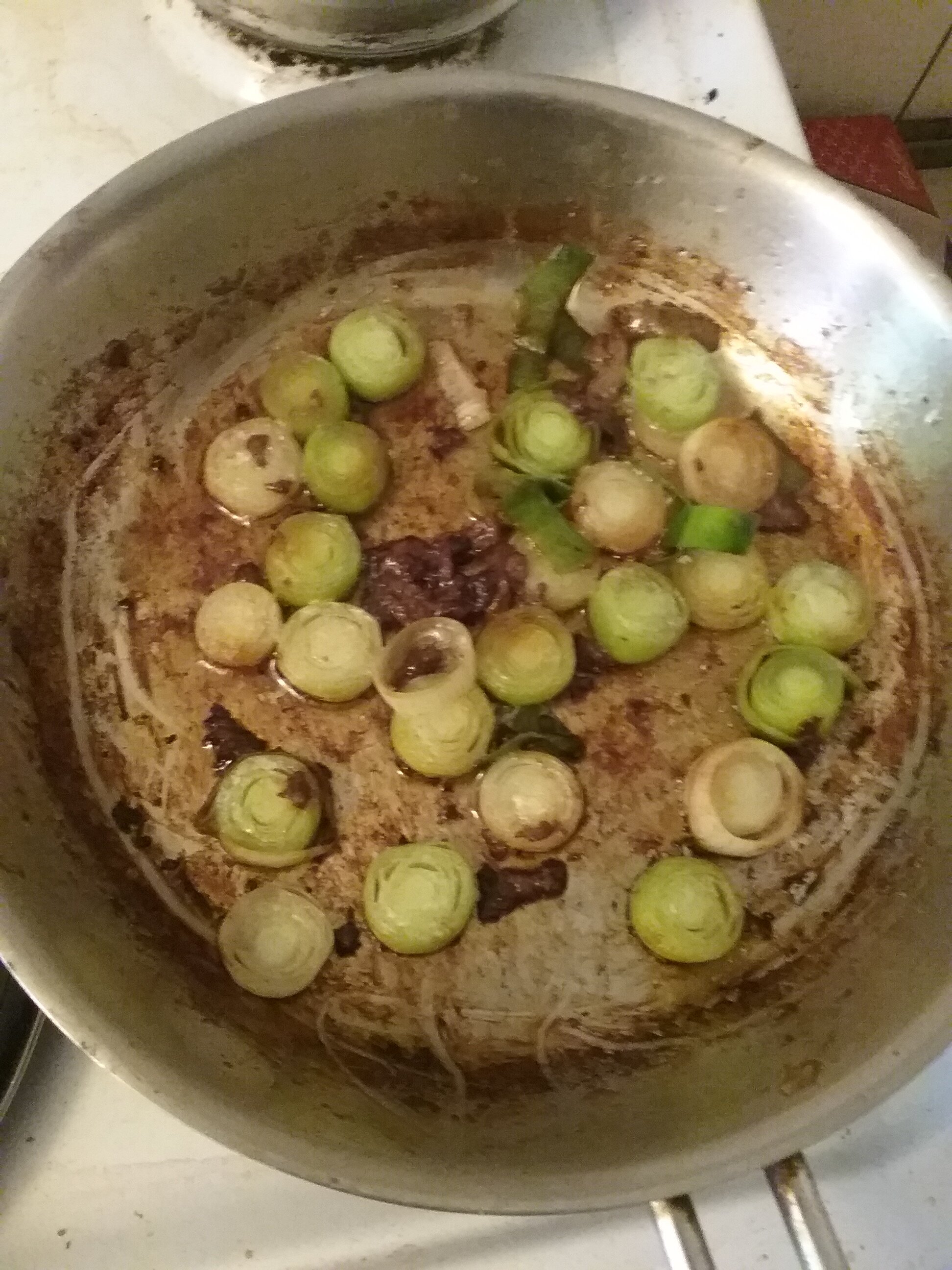 Penne met ui kastanje champignons Prei knoflook en crème fraiche en kaas