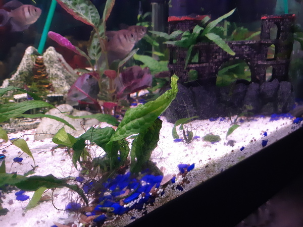 In mijn oude aquarium gebruik ik geen voedingsbodem, maar gewoon korrels van plastiek? (Het is een tweedehands, dus weet ik het niet). Ik dacht aan voedingsbodem van 1cm en grind van 3-4cm. Ik heb corrydoras en pleco. En volgens mij moeten die iets zachts hebben zoals zand of korrels. Mijn planten doen het goed, maar ik denk omdat ik plantenvoedind en kleitabletten gebruik. Maar ze hebben geen houvast in die korrels. Zie korrels in foto.
