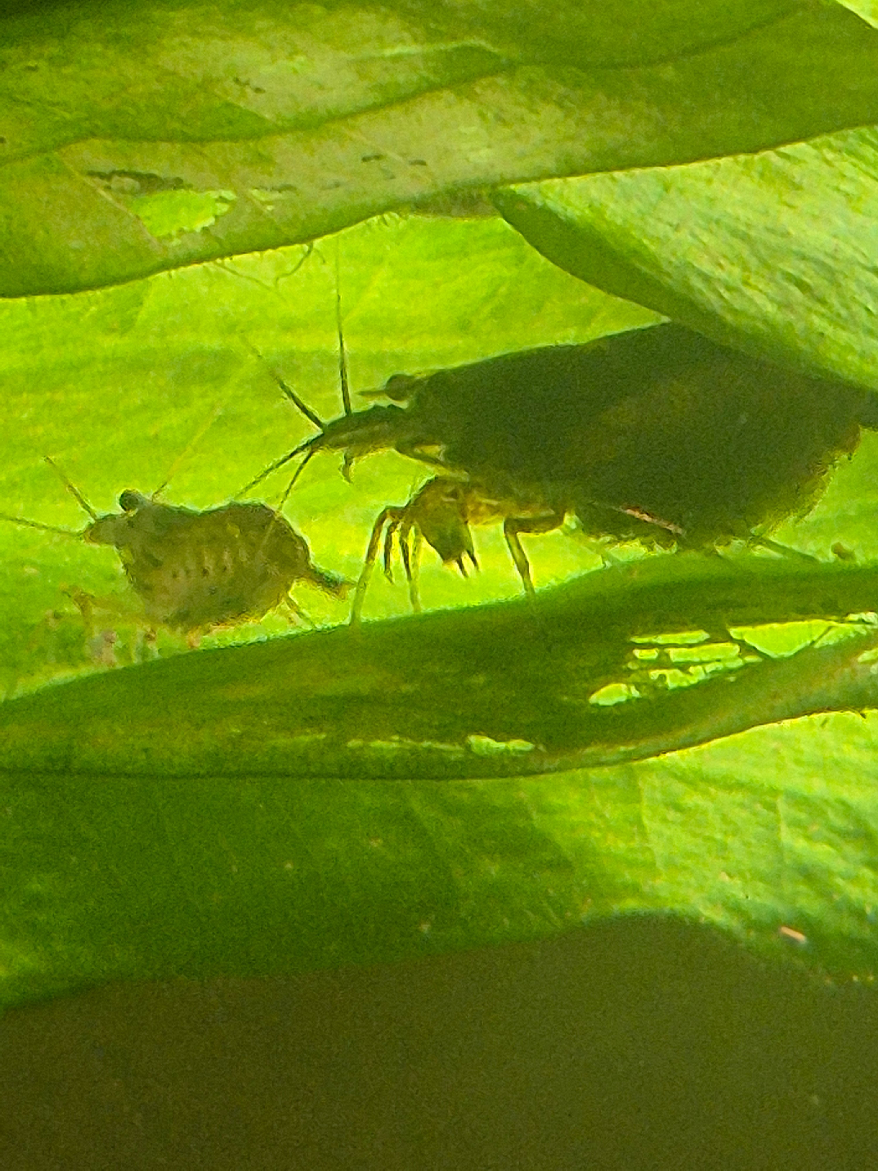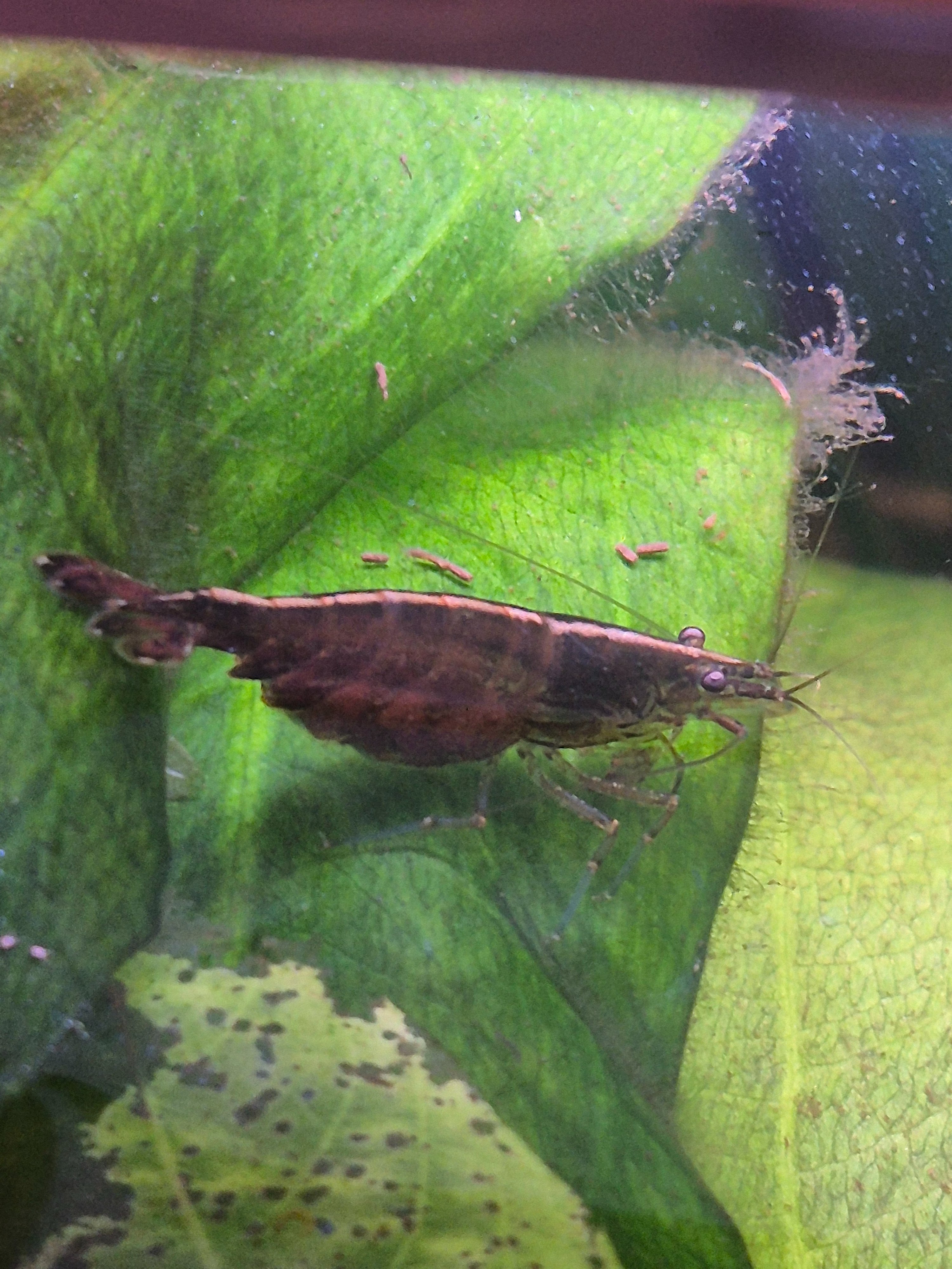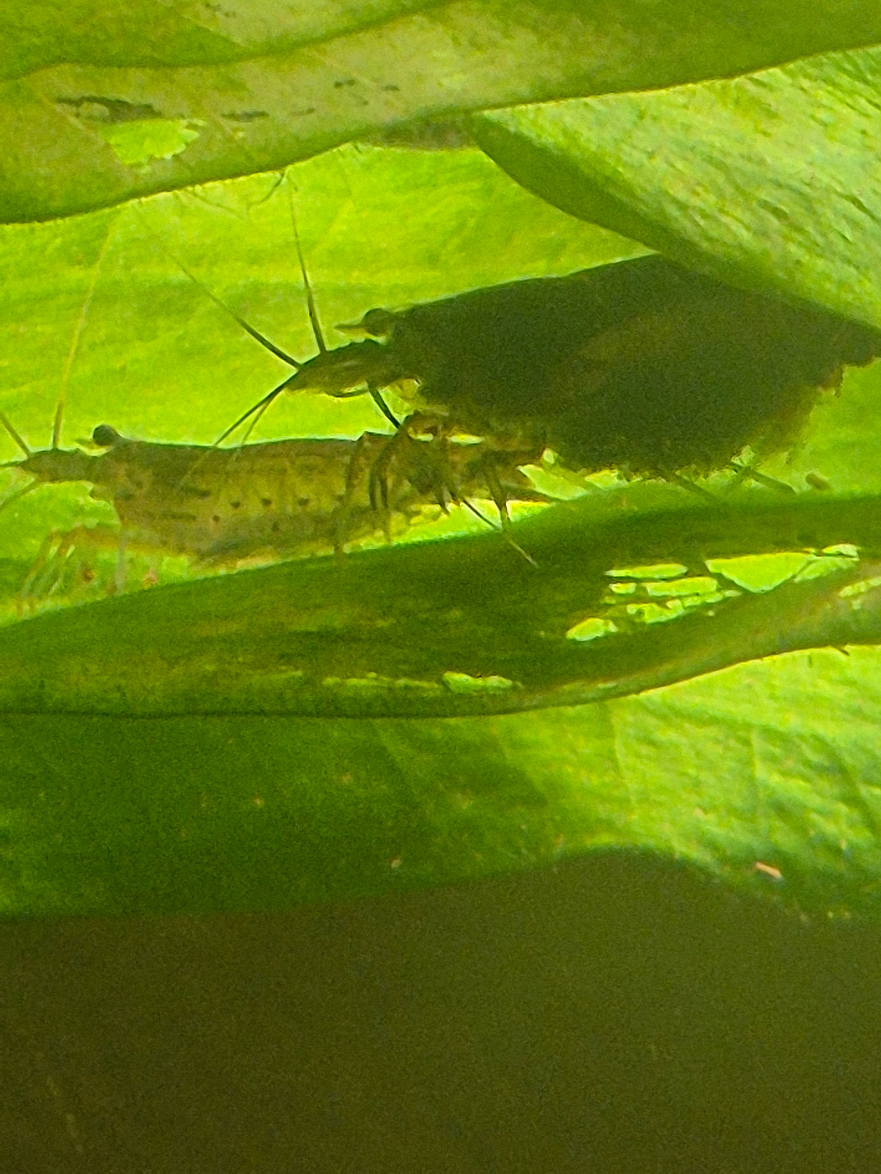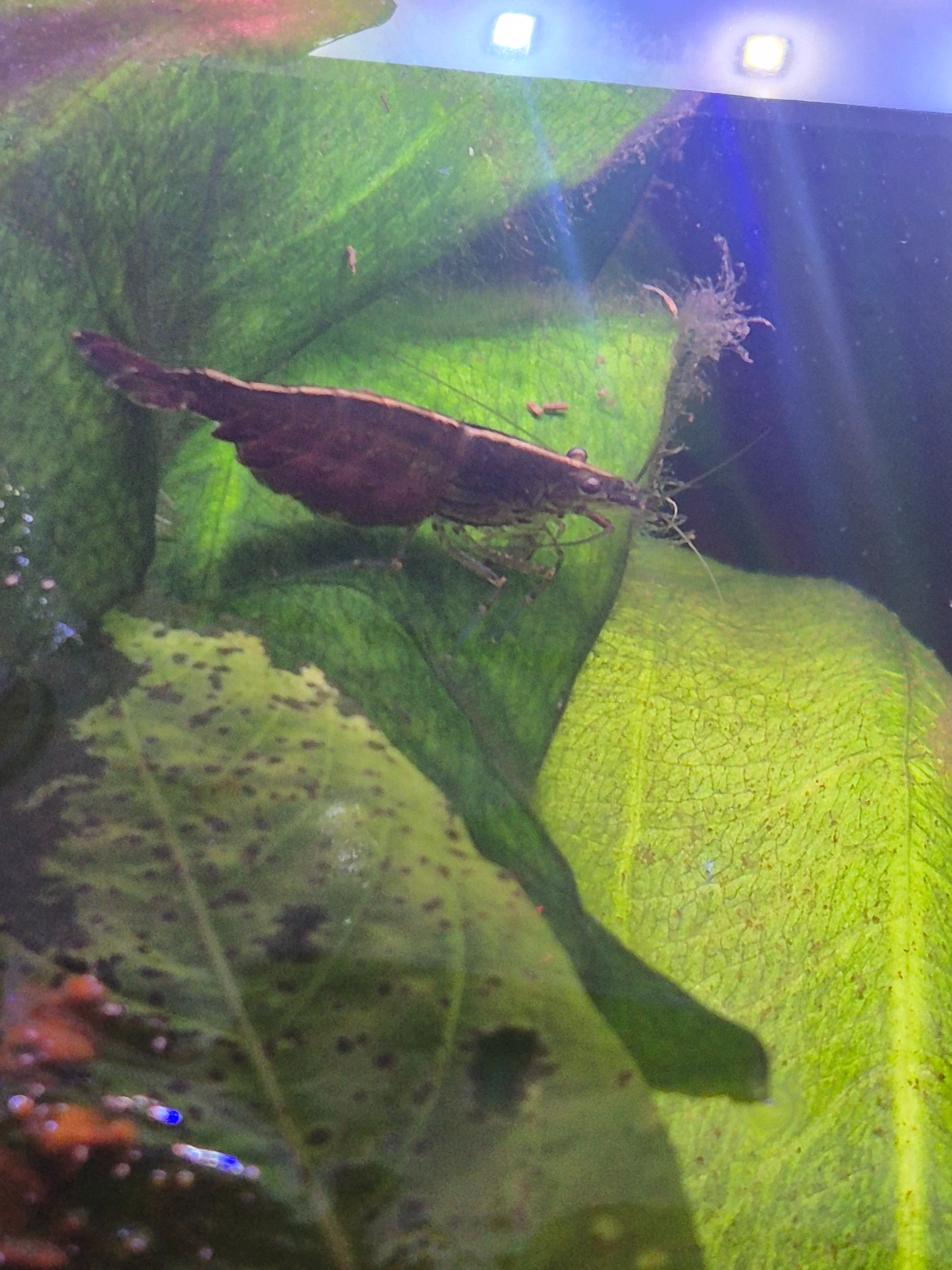 Zag de garnalen in mijn bak en zag ineens dat er een paar flinke jongens in zaten..