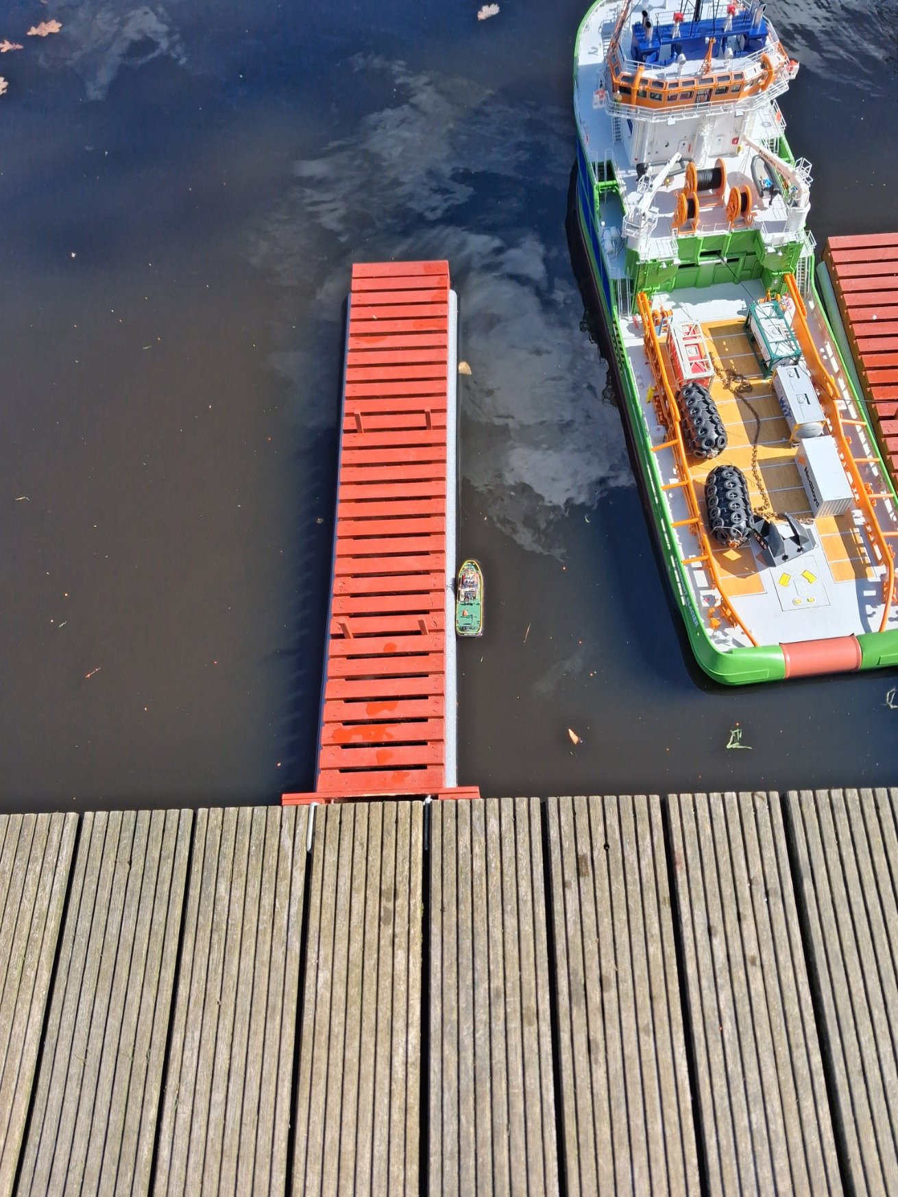Ja, hij is echt te zien op de foto: naast de steiger.