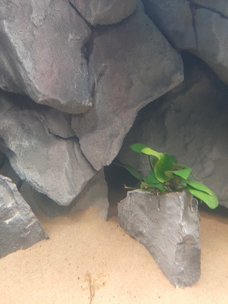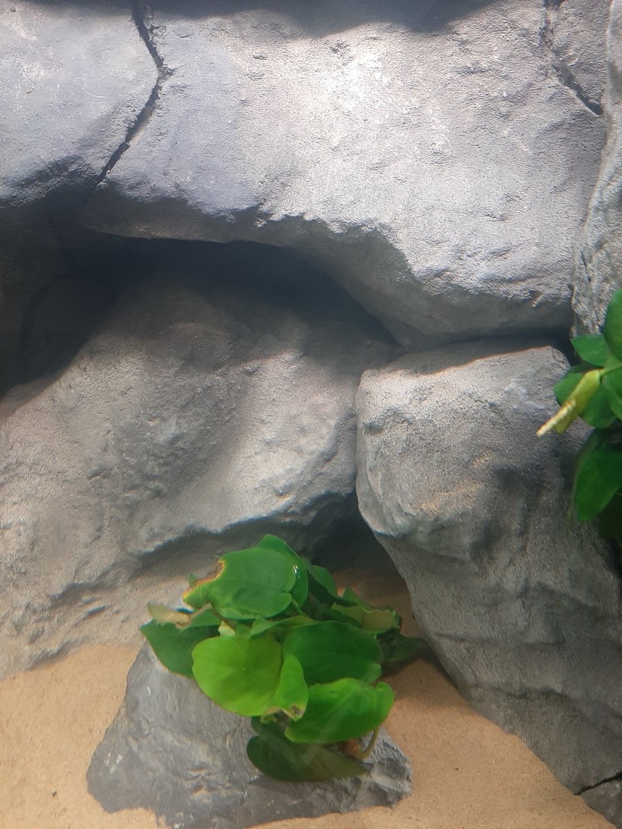 * In de achterwand zitten al best veel holen waar de vissen zich eventueel in kunnen verschuilen, daar heb ik deze ook op uitgezocht. de groeven die ertussen zitten lopen best ver door naar achteren. De synodontissen vinden dit geweldig en hebben er onderin ook al een flink hol in gegraven 🤣