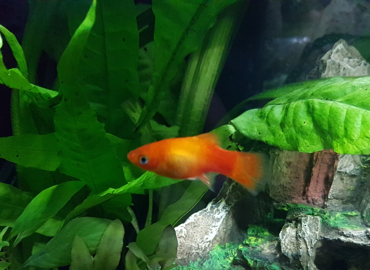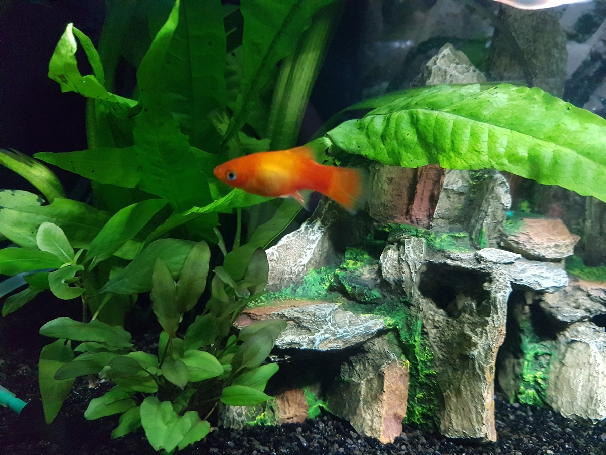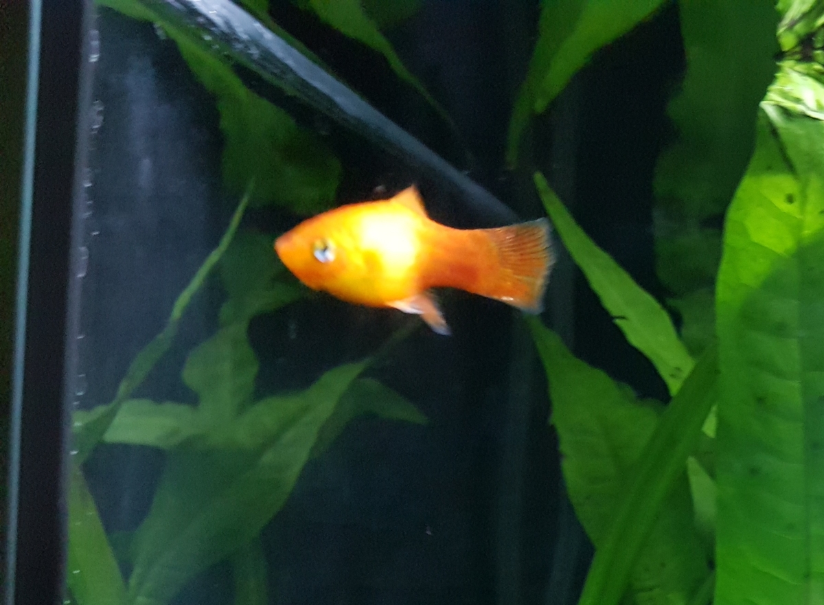 Vissenbestand is 5x platy vrouw (1 erg druk en jaagt op de anderen)