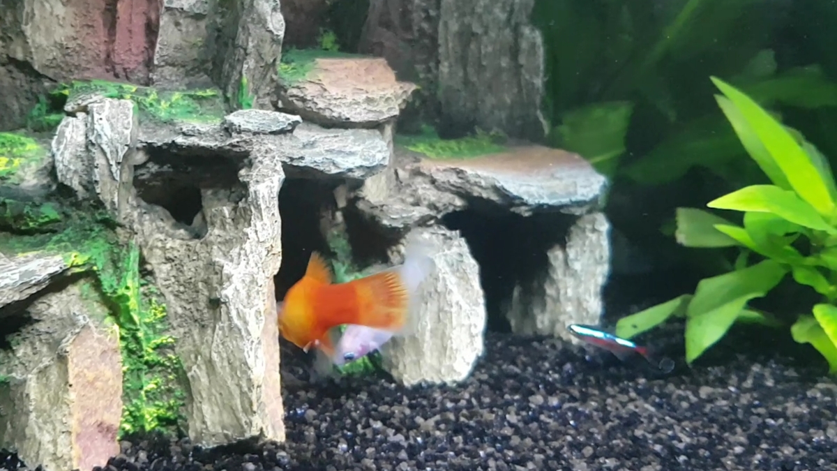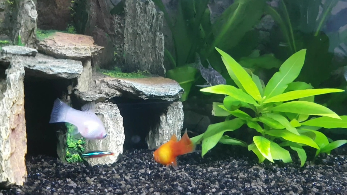 Vissen eten goed, ze lijken niet meer te schuren. 3 v/d 5 platys blijken zwanger uit de dierenwinkel.