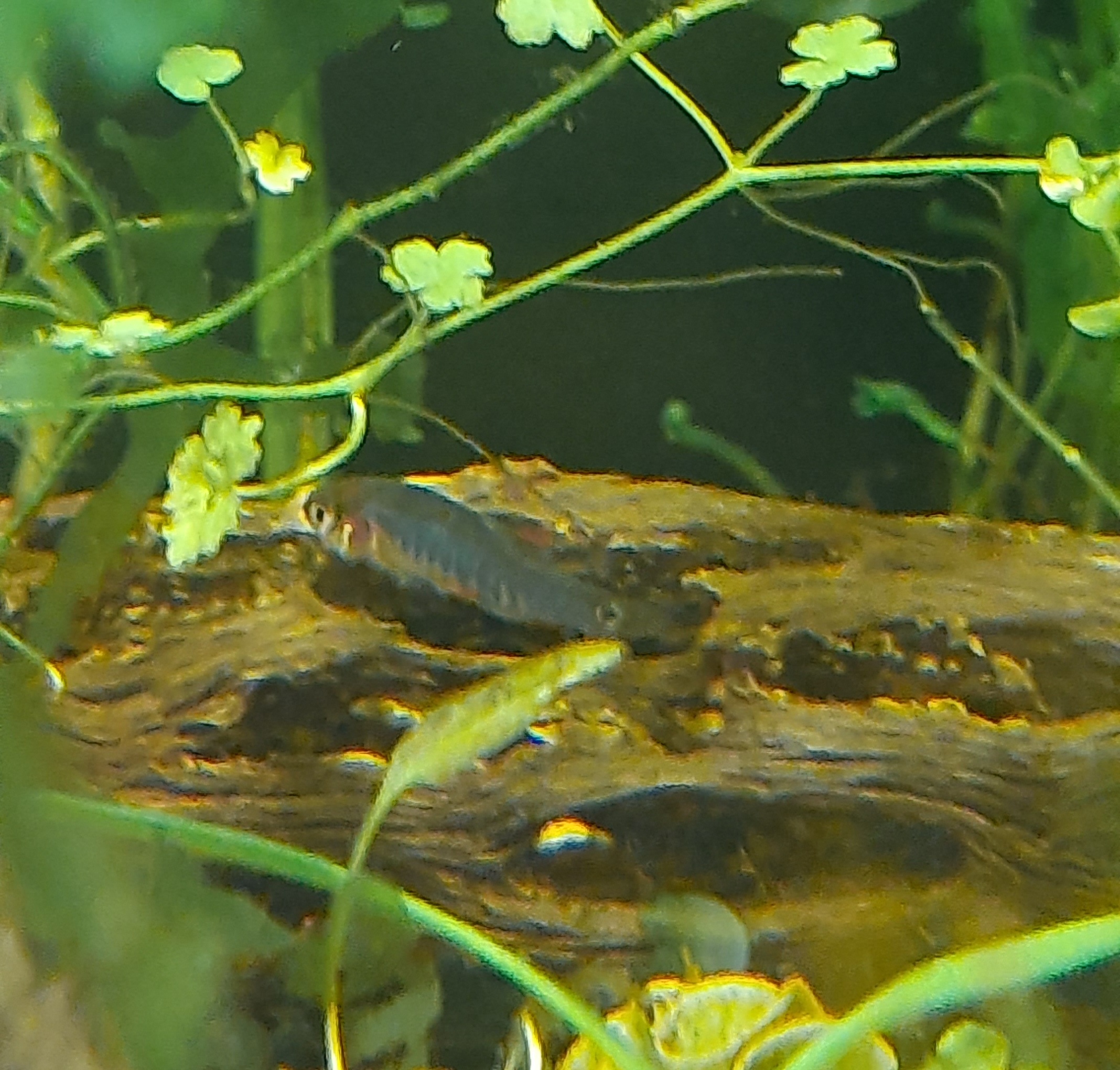 Ik heb sinds een paar weken 1 Danio erythromicron/ Rasbora emerald die er erg sneu uit ziet. Het lijkt of hij vinnen mist, hij is mager en ook zijn staart is beschadigd. Hij is een schim van de vis die hij was. De eetlust is hem nog niet vergaan en hij zwemt dapper, maar duidelijk gemankeerd, rond. De andere rasbora's gaan goed en zijn mooi op kleur. Ik heb ze nu een maand of 3. Aquarium is al veel langer draaiend, zonder eerdere problemen. Er zit verder een gezonde groep vuurgarnalen in de bak. Ik heb vorige week Esha 2000 gebruikt omdat ik iets als vinrot vermoedde. Ik zie (nog) geen verschil. Heeft iemand een vermoeden wat er met dit visje aan de hand kan zijn en hoe ik hem kan helpen? Ik hoor het graag.