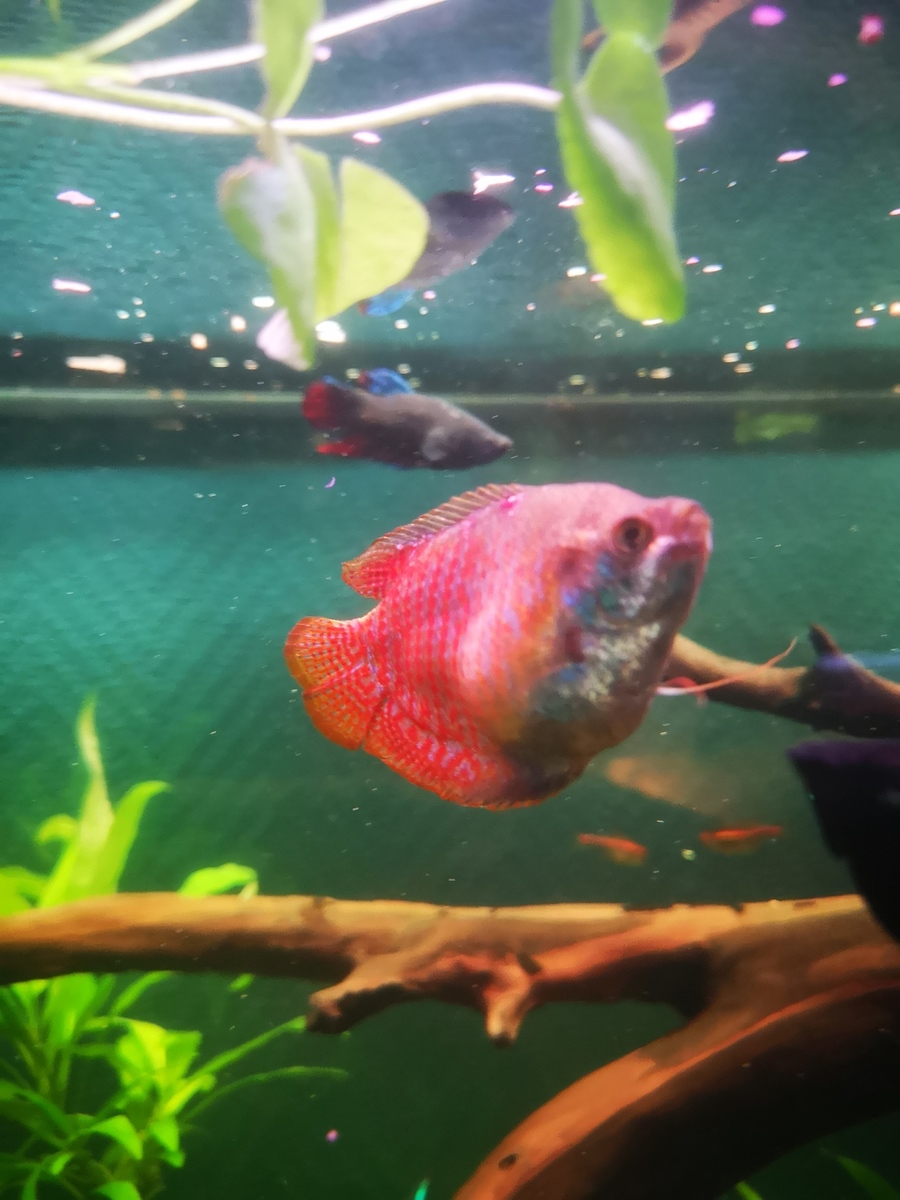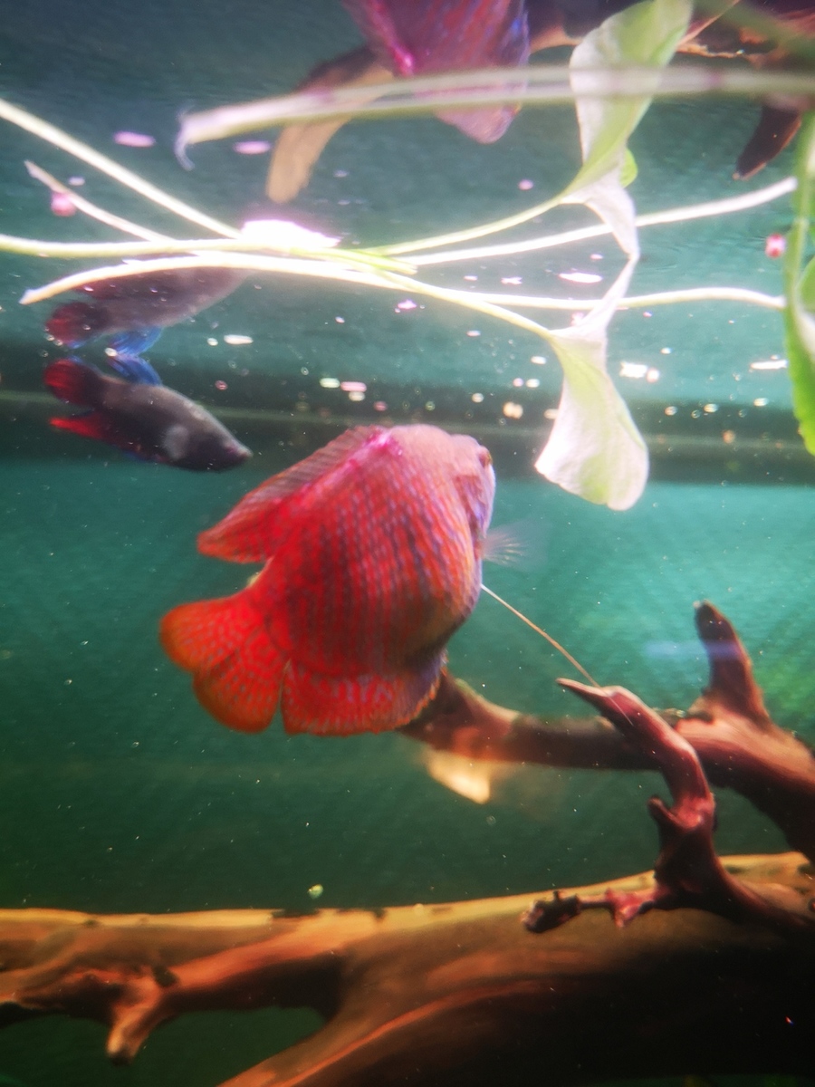 Ik keek net ik mijn aquarium en zag ineens dat mijn dwerggoerami een wit met rode stip heeft bij zijn rug vin als ik het goed heb, is dit een zieke of is dit wat anders?
